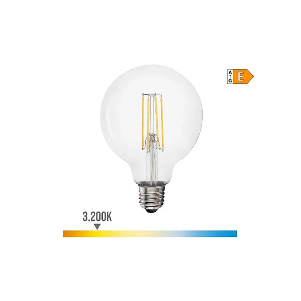 [Éclairage puissant] Profitez d’une luminosité de 800 lumens pour illuminer efficacement chaque pièce. [Ambiance chaleureuse] Température de couleur 3200K pour une lumière douce et accueillante. [Économie d’énergie] Consomme seulement 6W tout en remplaçant une ampoule classique de 60W. [Longue durée de vie] Jusqu’à 25 000 heures d’utilisation pour un investissement durable. [Design élégant] Forme globe et filament apparent pour une touche décorative tendance. [Installation universelle] Culot E27 compatible avec la majorité des luminaires standards.Caractéristiques et avantages