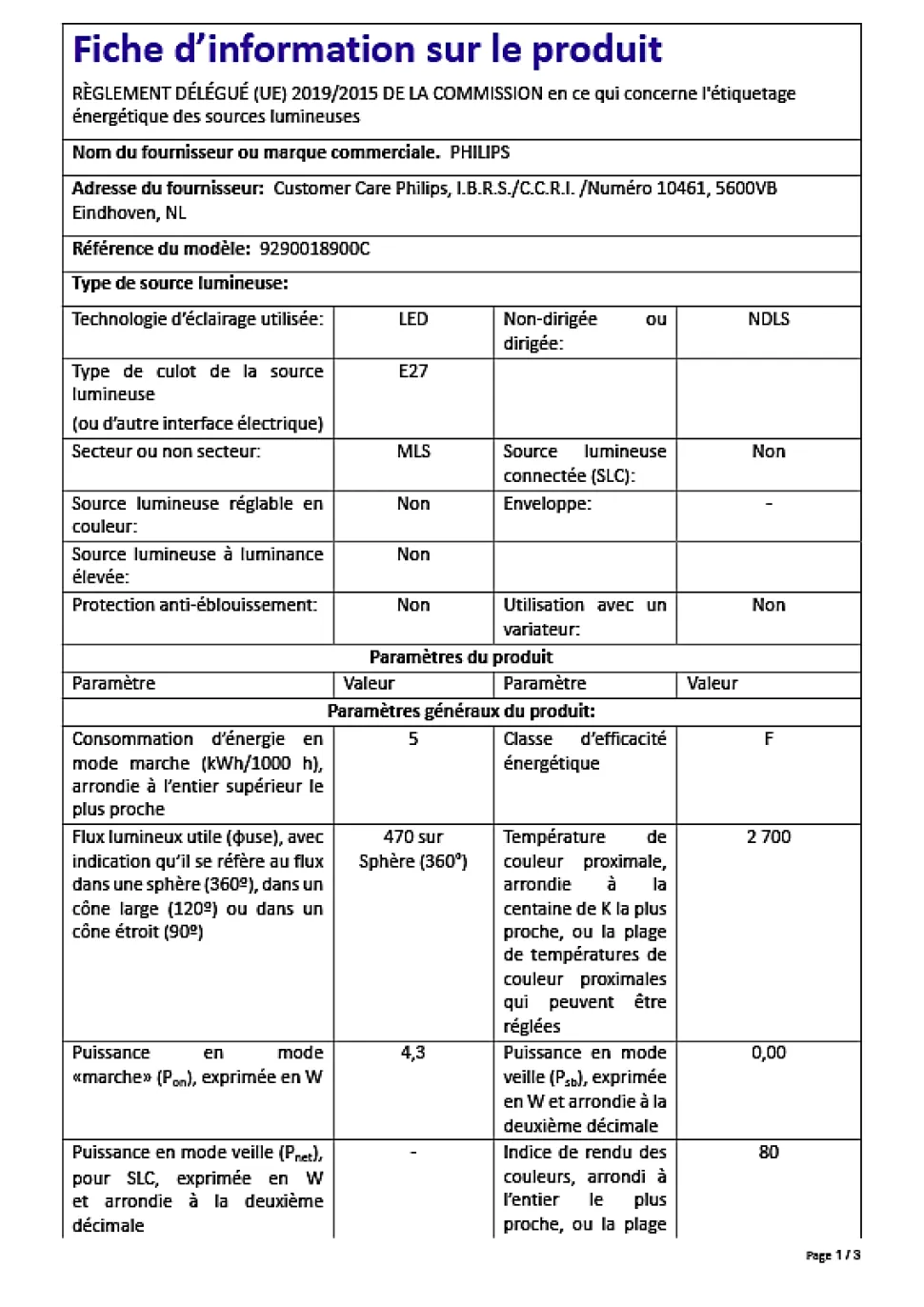 Ampoule LED E27 A60 470lm 4,3/40W blanc chaud l.6 x H.10,6 cm Philips