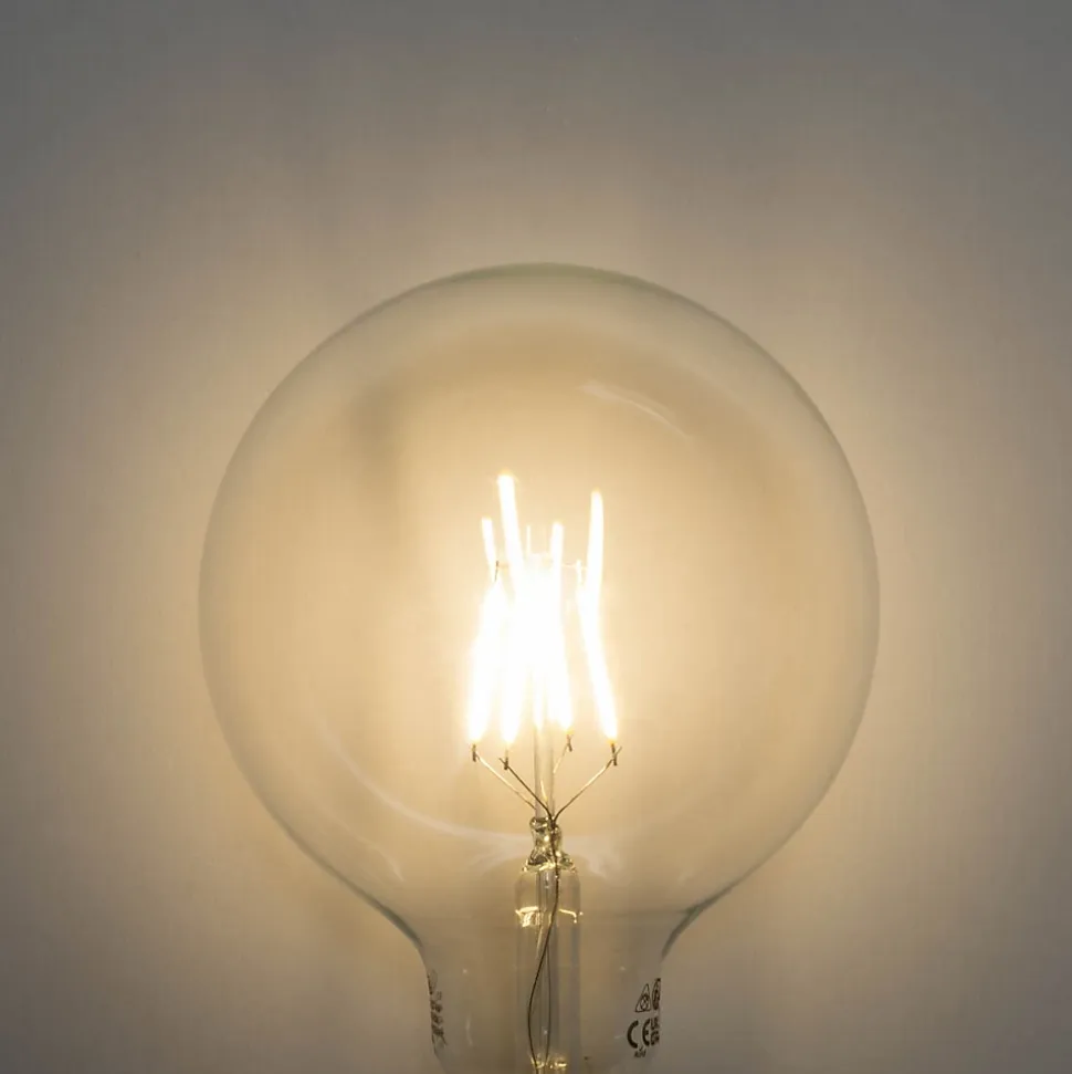 Cette ampoule LED E27 dimmable, de grande taille G125, apporte une atmosphère chaleureuse et agréable à toutes les pièces. Avec une température de couleur de 3000K, elle diffuse une lumière blanche chaude, suffisamment lumineuse pour un éclairage fonctionnel, mais aussi assez douce pour une ambiance cosy. Son verre transparent et son filament visible lui confèrent un look classique et moderne à la fois, idéal pour les luminaires ouverts et les suspensions où l’ampoule elle-même est un élément décoratif. D’une consommation énergétique de seulement 5W et d’un flux lumineux de 450 lumens, cette ampoule est non seulement économique, mais aussi lumineuse et chaleureuse. Grâce à sa fonction dimmable, vous pouvez facilement ajuster la luminosité à votre convenance, d’une douce lueur à une lumière plus intense. Ajoutez cette ampoule LED élégante à votre intérieur et profitez d’un mélange parfait d’atmosphère et de fonctionnalité !