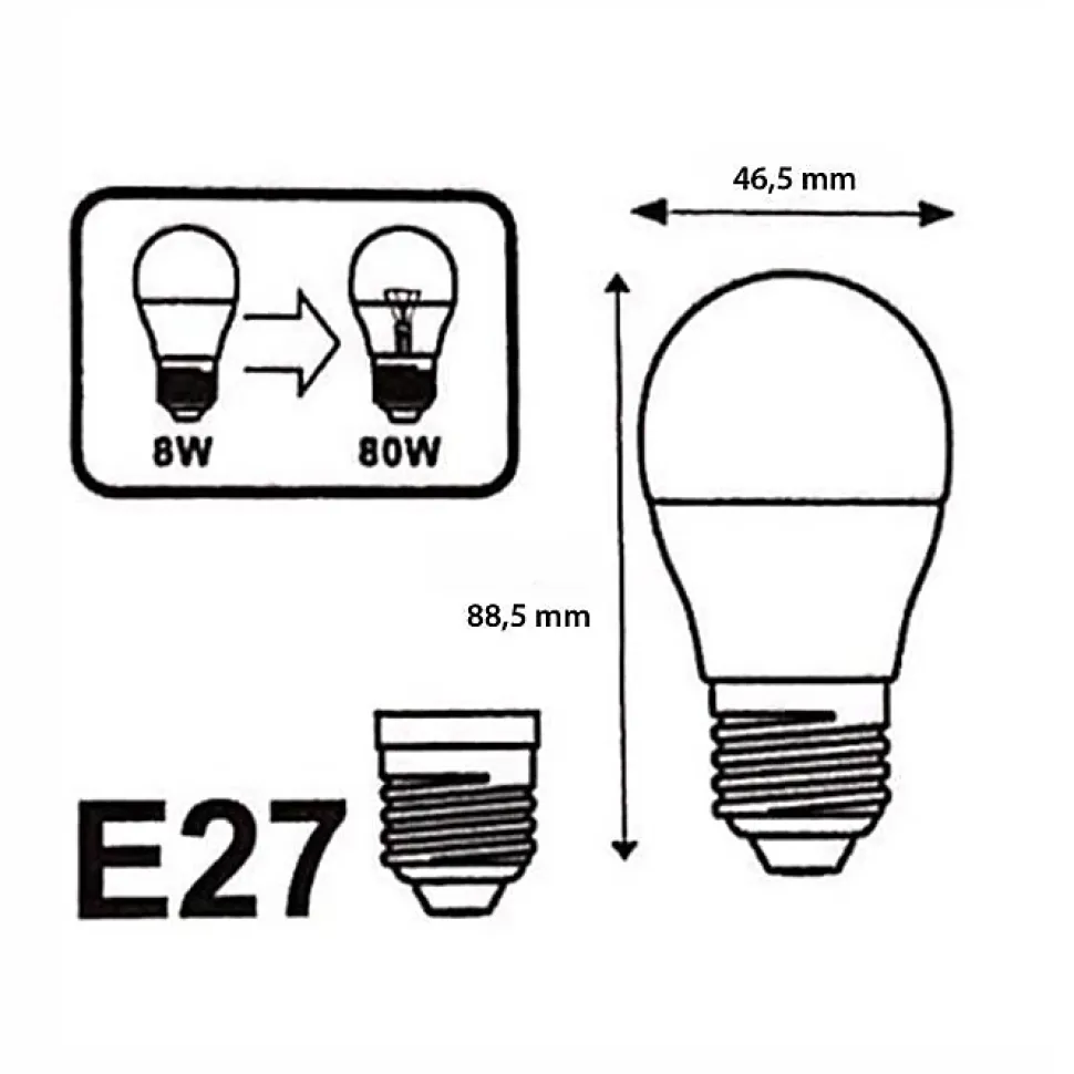 Cette ampoule LED E27 G45 de 8W offre un éclairage blanc chaud (2300K) et remplace efficacement vos anciennes ampoules. Avec une durée de vie de 30 000 heures, elle est idéale pour un usage intérieur. Pack de 10, classe énergétique A+.