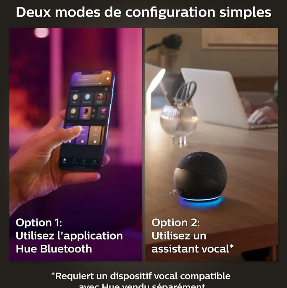 - Contrôle simple – Contrôlez depuis un accessoire Hue, votre mobile ou via votre assistant vocal.
