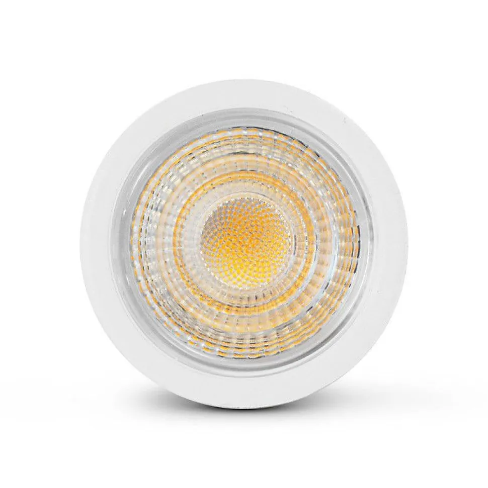 Ampoule LED GU10 MIIDEX 5W (425 lm) blanc chaud 2700K — spot compact pour intérieur avec angle 75°, IRC>80, durée de vie 30 000 h, culot GU10, IP20, non dimmable. Consommation 5W pour 425 lm, construction PC + aluminium, montage en spot directionnel. Certifié CE, RoHS et EMC.