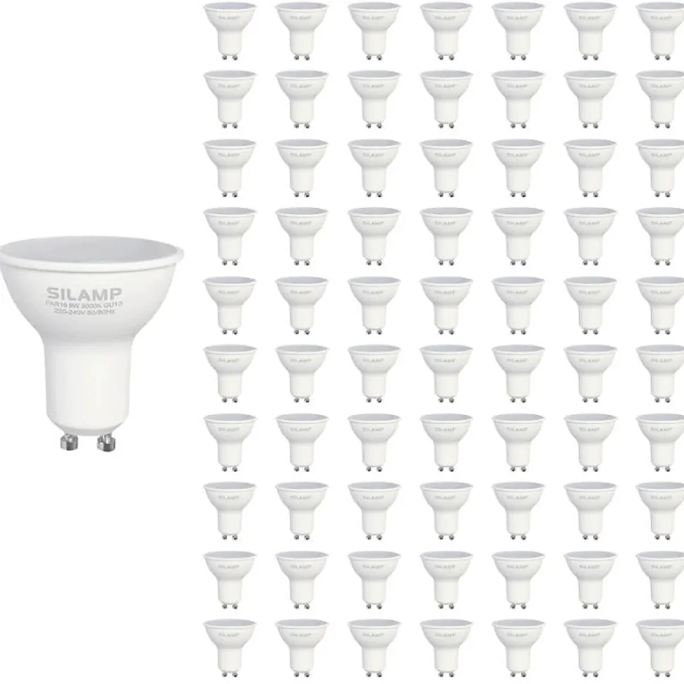 [Ampoule LED GU10 8W 220V (Pack de 100)] Ce Pack de 100 Ampoules LED GU10 8W est doté d’un culot d’ampoule de type GU10, caractérisé par 2 broches séparées de 10 millimètres.[Un éclairage adapté à vos pièces de vie] Éclairez vos pièces à vivre de ces ampoules GU10: salon, cuisine, chambre, voire même locaux professionnels, tout en économisant votre consommation d’énergie. Chaque ampoule LED GU10 8W offre une luminosité de 650 lumens pour une consommation de seulement 8W, ce qui en fait un excellent remplacement pour une ampoule halogène de 80W.[Une qualité garantie] Son réflecteur opaque diffuse une lumière homogène et évite l’éblouissement. La LED permet une durée de vie accrue de vos ampoules tout en gardant une efficacité importante. Utilisez-la sans hésitation dans vos luminaires équipés de douilles GU10.[Indice de protection IP20] Dotée d’un indice de protection IP20, ces ampoules doivent exclusivement être utilisées en intérieur.[La qualité Silamp] Silamp s’engage pour vous fournir des produits de qualité et garantis 2 ans, ainsi qu’un service client à l’écoute et réactif.- [Ampoule LED GU10 8W 220V (Pack de 100)] Ce Pack de 100 Ampoules LED GU10 8W est doté d’un culot d’ampoule de type GU10, caractérisé par 2 broches séparées de 10 millimètres.