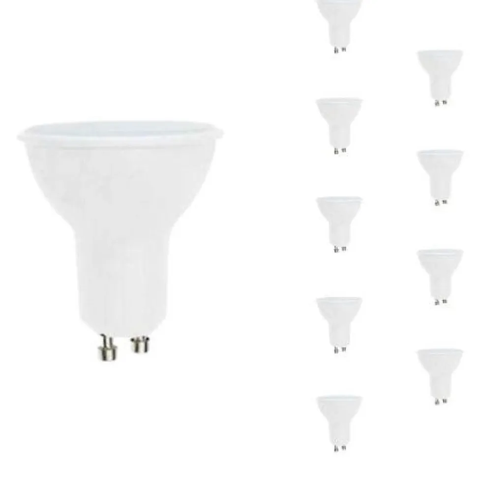 Ampoule LED GU10 10W (Pack de 10) : éclairage puissant et polyvalentLe Pack de 10 Ampoules LED GU10 10W est conçu pour offrir un éclairage performant et économe en énergie. Dotées d’un culot GU10 avec deux broches espacées de 10mm, ces ampoules sont idéales pour remplacer vos anciennes ampoules halogènes. Vous pouvez choisir parmi différentes températures de couleur : blanc chaud, blanc neutre ou blanc froid.Les caractéristiques de l’ampoule LED GU10 10W Puissance de 10W : fournit une luminosité optimale tout en réduisant la consommation énergétique. Intensité lumineuse de 880 lumens : assure un éclairage puissant et homogène. Angle d’éclairage de 110° : permet une diffusion large de la lumière. Design épuré : convient à tous les types d’intérieurs. Technologie LED : allumage instantané et sans scintillement.Les avantages de l’ampoule LED GU10 10W Économie d’énergie : remplace efficacement les ampoules halogènes avec une consommation réduite. Polyvalence d’utilisation : convient à diverses applications en intérieur. Installation facile : compatible avec toutes les douilles GU10 standards. Éclairage ajustable : disponible en blanc chaud, blanc neutre et blanc froid.Comment installer cette ampoule LED GU10 10W ? Vérifiez la compatibilité : assurez-vous que votre luminaire est équipé d’un culot GU10. Retirez l’ancienne ampoule : dévissez-la et insérez la nouvelle LED GU10. Testez l’éclairage : allumez l’installation et vérifiez la lumière.Où utiliser cette ampoule LED GU10 10W ? Ambiance chaleure