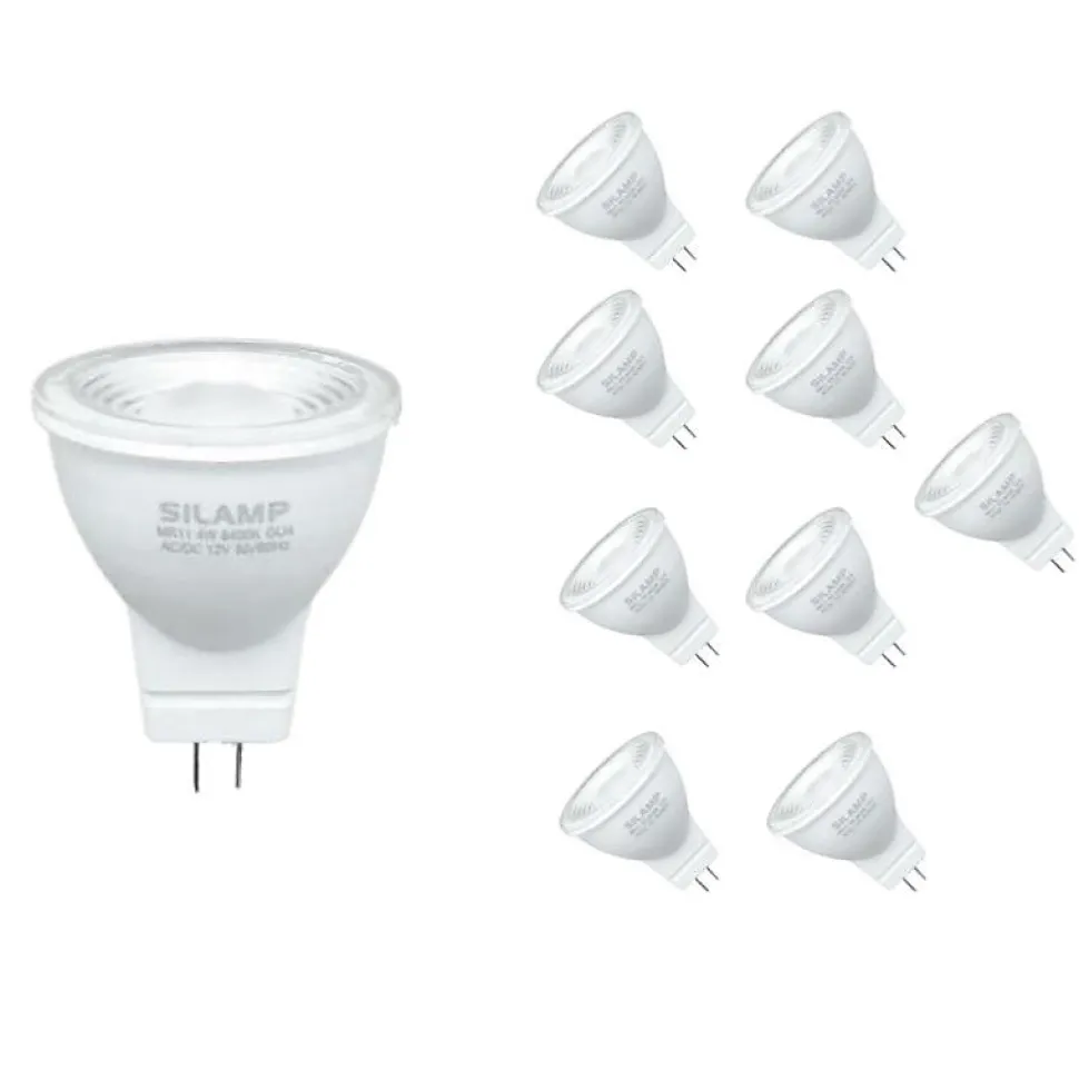 [Ampoule LED GU4 / MR11 4W 12V (Pack de 10)] Pour vos luminaires en 12V ou vos installations spécifiques en basse tension, optez pour l’Ampoule LED GU4 / MR11 4W 12V, un spotdoté d’un culot d’ampoule de type GU4 qui se caractérise par les 2 broches séparées de 4 millimètres. [Un éclairage économique] L’ampoule possède une puissance de 4W qui peut être comparée à une halogène de 25W environ. Grâce à la technologie LED, vous effectuerez des économies sur vos factures d’électricité. Elle pourra être installée sur tous vos appareils fonctionnant en basse tension. Vous pourrez également la brancher sur un transformateur.[Des matériaux durables, IP20] Solide et efficace, cette ampoule pourra être encastrée dans un faux-plafond grâce à une douille G4. Son corps en plastique permet une dispersion efficace de la chaleur. Son indice de protection IP20 indique que l’ampoule est adaptée à un usage en intérieur.[Utilisation] Puisque ce type de GU4 fonctionne en 12V, il vous faudra une installation fonctionnant sur de la basse tension ou prévoir un transformateur. Cette ampoule LED n’est pas dimmable.[La qualité Silamp] Silamp s’engage pour vous fournir des produits de qualité et garantis 2 ans, ainsi qu’un service client à l’écoute et réactif.- [Ampoule LED GU4 / MR11 4W 12V (Pack de 10)] Pour vos luminaires en 12V ou vos installations spécifiques en basse tension, optez pour l’Ampoule LED GU4 / MR11 4W 12V, un spotdoté d’un culot d’ampoule de type GU4 qui se caractérise par les 2 broches séparées de 4 millimètres.