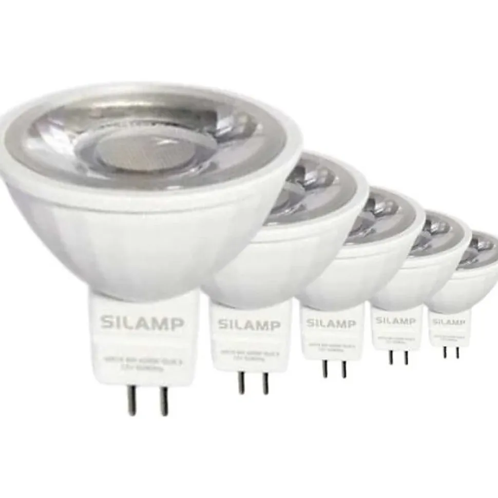 Remplacez vos anciennes lampes à culot avec cette Ampoule LED GU5.3 / MR16 12V 8W SMD 80° (pack de 5). Conforme aux normes CE et garantie 2 ans. Cette ampoule LED de haute qualité de la marque SILUMEN a une puissance équivalente à 40W et une durée de vie moyenne de 30000 heures. Elle est idéale pour une utilisation en intérieur et ne peut pas être utilisée avec un variateur.