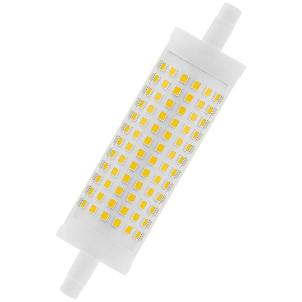 Lampes LED spéciales à double extrémité. Caractéristiques du produit : alternative LED aux lampes R7 traditionnelles. Bonne qualité de lumière ; indice de rendu des couleurs ≥ 80 ; chromaticité constante. Plus produit : S’adapte à la majorité des luminaires R7 grâce à son socle excentré. Bonne émission de lumière pour toutes les situations. Longue durée de vie jusqu’à 15 000 heures. Charge thermique inférieure (par rapport au produit de référence standard). Garantie de quatre ans. Domaines d’application : Éclairage général dans des températures ambiantes allant de -20 à +40. Hospitalité. Applications à domicile. Utilisation en extérieur uniquement dans des luminaires extérieurs appropriés.