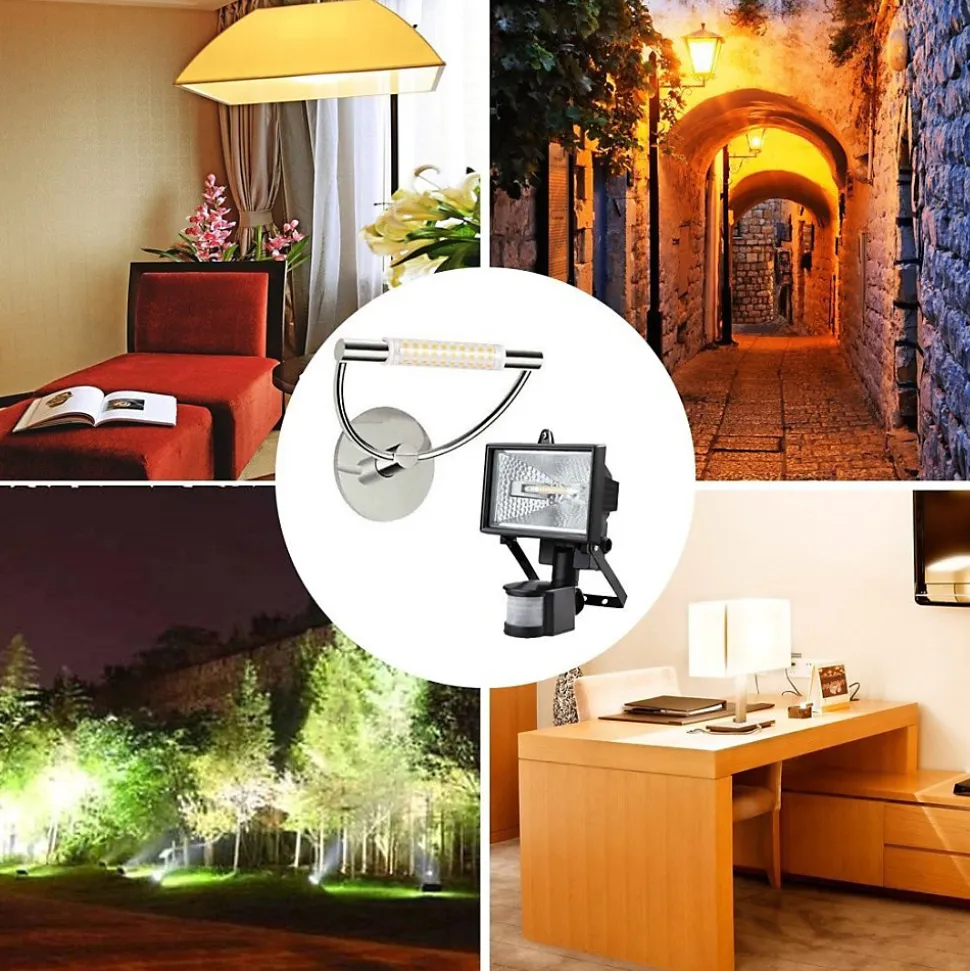 Ampoule LED 11watt avec culot R7s et longueur 118mm et dimmable, il est possible de varier l’intensité de la lumière. Remplace les anciennes ampoules halogènes linéaires de 100 W.Ampoule halogène LED dimmable de 11watt et 1280 lumen avec un diamètre de seulement ø23mm !Cette ampoule LED avec culot R7S et 118 mm a un angle d’ouverture de la lumière grâce auquel il est possible d’avoir une lumière à 360°, donc l’ampoule entière, idéale pour chaque application et une luminosité accrue.Où puis-je placer mon ampoule LED R7S 118 mm 11 watts ? Ampoule LED avec douille R7S de 118 mm et puissance de 11 watts, idéale pour une installation dans des appliques murales, des plafonniers, des lustres, des lampadaires, des phares halogènes ou partout où il y a des ampoules halogènes de 118 mm qui doivent être ajustées, c’est possible, en effet, avec un variateur, ajustez l’intensité lumineuse de cette ampoule LED. Les ampoules halogènes à intensité variable se retrouvent très souvent dans les appliques murales ou les lampadaires. Elles remplacent les anciennes ampoules halogènes de 100 Watts, avec un flux lumineux de 1280 lumens. Chaque ampoule LED ne peut être installée à l’extérieur que si elle est protégée de l’eau et insérée à l’intérieur de structures étanches telles que des globes ou des lanternes.Ampoule LED linéaire avec douille R7s avec connexion directe au 230V.Ampoule LED linéaire R7s avec classe de protection IP40.Ampoule LED dimmable, avec un variateur il est possible de varier l’intensité de la lumière. Si elle ne fonctionne pas avec le variateur utilisé avec une ampoule halogène, elle doit être remplacée par un variateur spécial pour LED