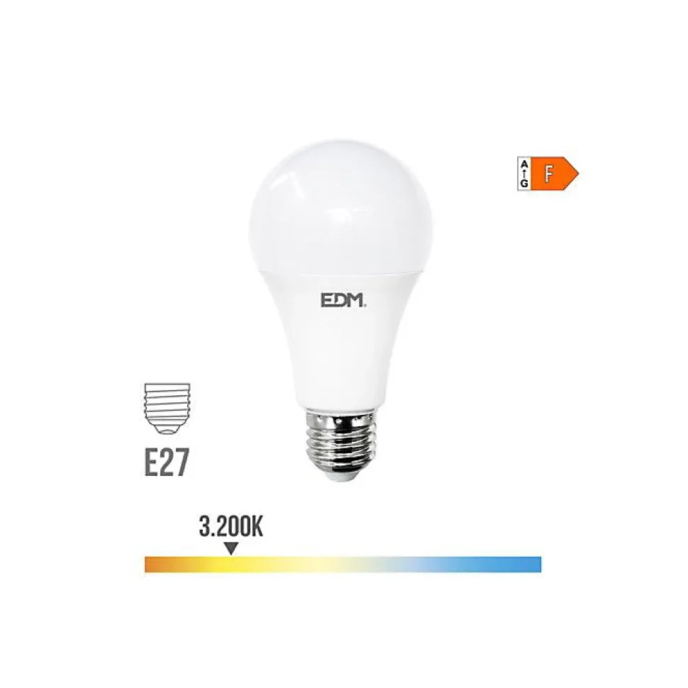 Cette ampoule LED standard E27 de la marque EDM offre une puissance de 24W et une luminosité de 2700 lm avec une température de couleur de 3200K pour une lumière chaude. Elle a une durée de vie de 20000h et une classe énergétique A+. Les dimensions sont de Ø 7 x 13,6 cm et elle fonctionne sous AC 220-240V. Elle est idéale pour un éclairage d’intérieur.