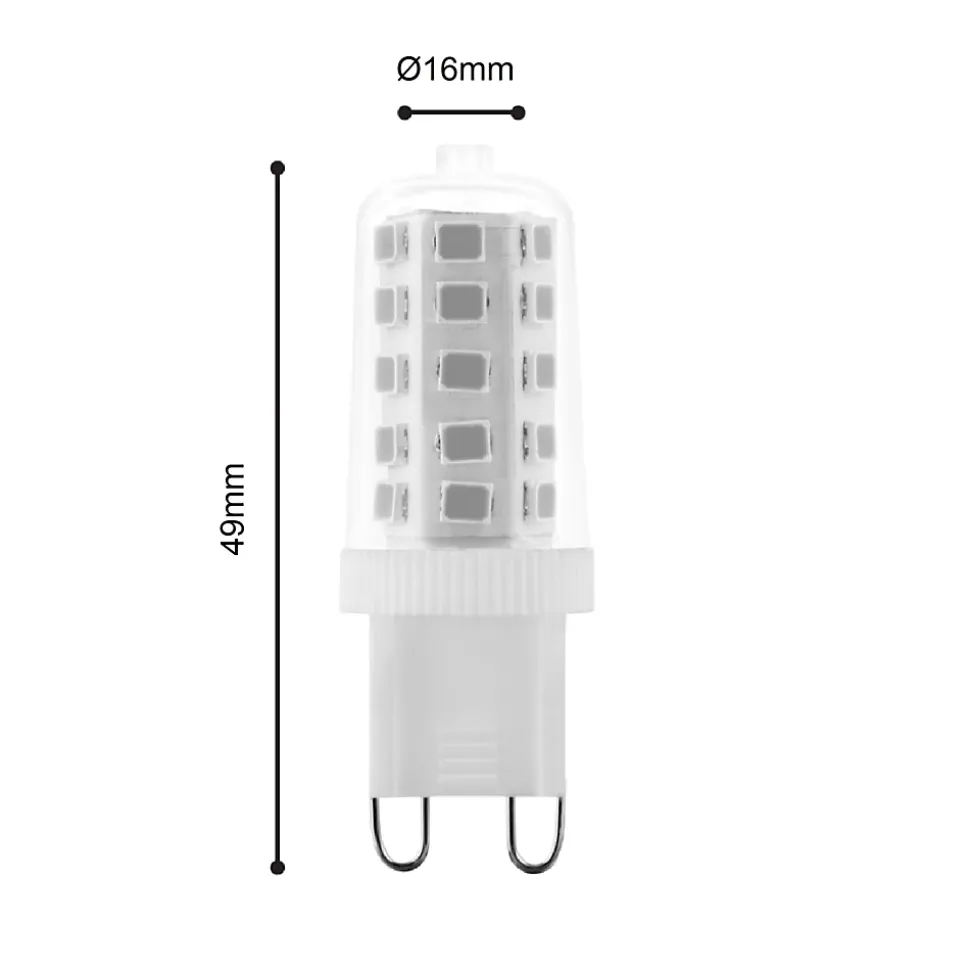 - Ampoule G9 qui ne fait que 49 mm de long et possède un diamètre minimal de 16 mm.