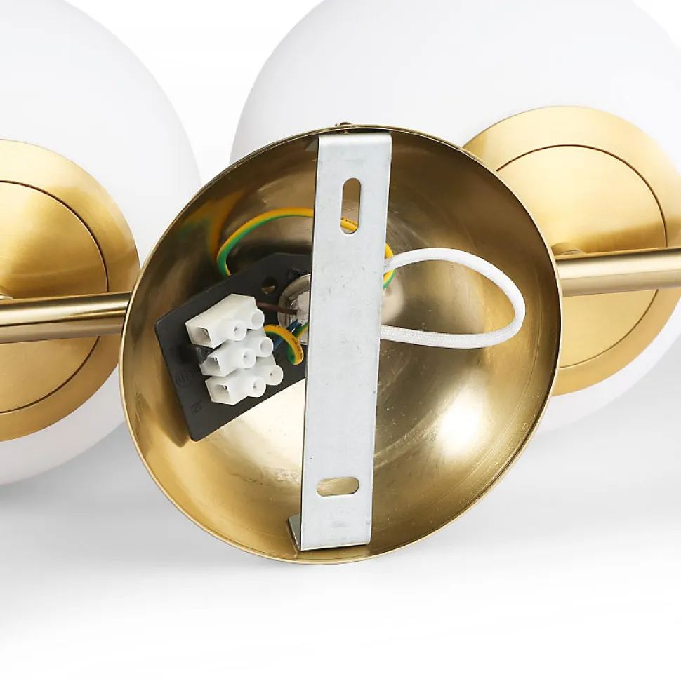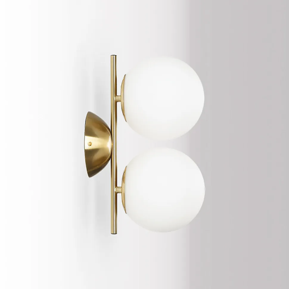 Aplique mural Double Boule de Cristal ANA Ø150mm en Métal Doré – Lampe E27 G45 pour Intérieur Design Élégant et Minimaliste Caractéristiques principales Design Élégant et Minimaliste Composé de deux sphères en cristal opalin et dune structure en aluminium avec finition dorée idéal pour les espaces classiques ou contemporains. Éclairage Lumineux et Diffus Les écrans sphériques en cristal offrent une lumière homogène et apaisante pour toute pièce intérieure. Douilles E27 G45 Accepte les ampoules E27 G45 non incluses avec une puissance maximale de 40W parfait pour créer une ambiance chaleureuse. Matériaux de Haute Qualité Fabriqué en aluminium et cristal garantissant une longue durabilité. Dimensions Compactes Dimensions de 280 x 450 mm avec des sphères de 150 mm de diamètre sadaptant à diverses configurations déclairage. Installation Facile Comprend tous les accessoires nécessaires pour une installation rapide et facile.
