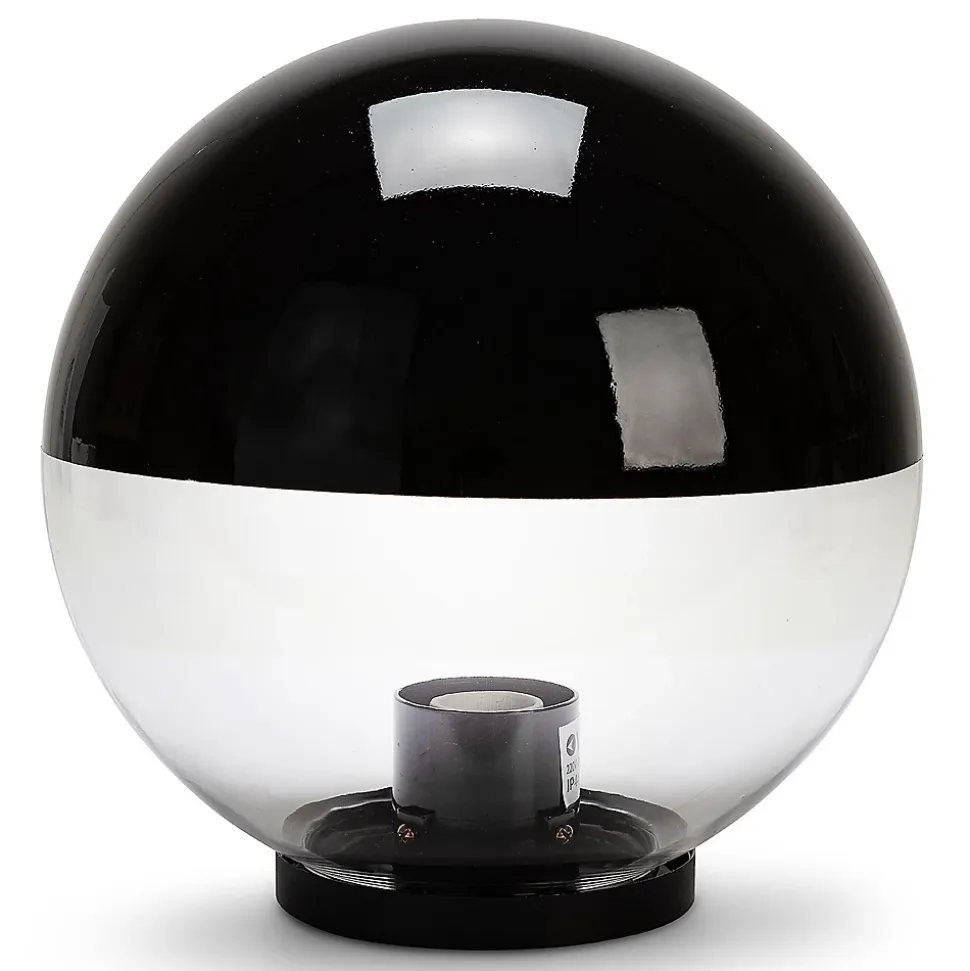 Sphère extérieure IP44, diamètre 300 mm. Compatible avec les ampoules LED jusqu’à 100W; Connexion E27; ampoule non incluse; Diffusion à 360 °. Matériel: PMMA; Le PMMA est un polymère hyper-résistant qui résiste aux chocs et au passage du temps. Il se connecte directement à la tension secteur. Avec diffuseur spécial (peint sur la moitié supérieure) qui réduit la pollution lumineuse: en effet la lumière ne sera plus diffusée à 360 ° mais seulement à 180 °, évitant de s’éclairer vers le haut. Cela vous permet d’éviter d’éclairer les parties supérieures que l’on ne veut pas éclairer (par exemple un balcon dans un immeuble) et en même temps de donner plus de lumière vers le bas.