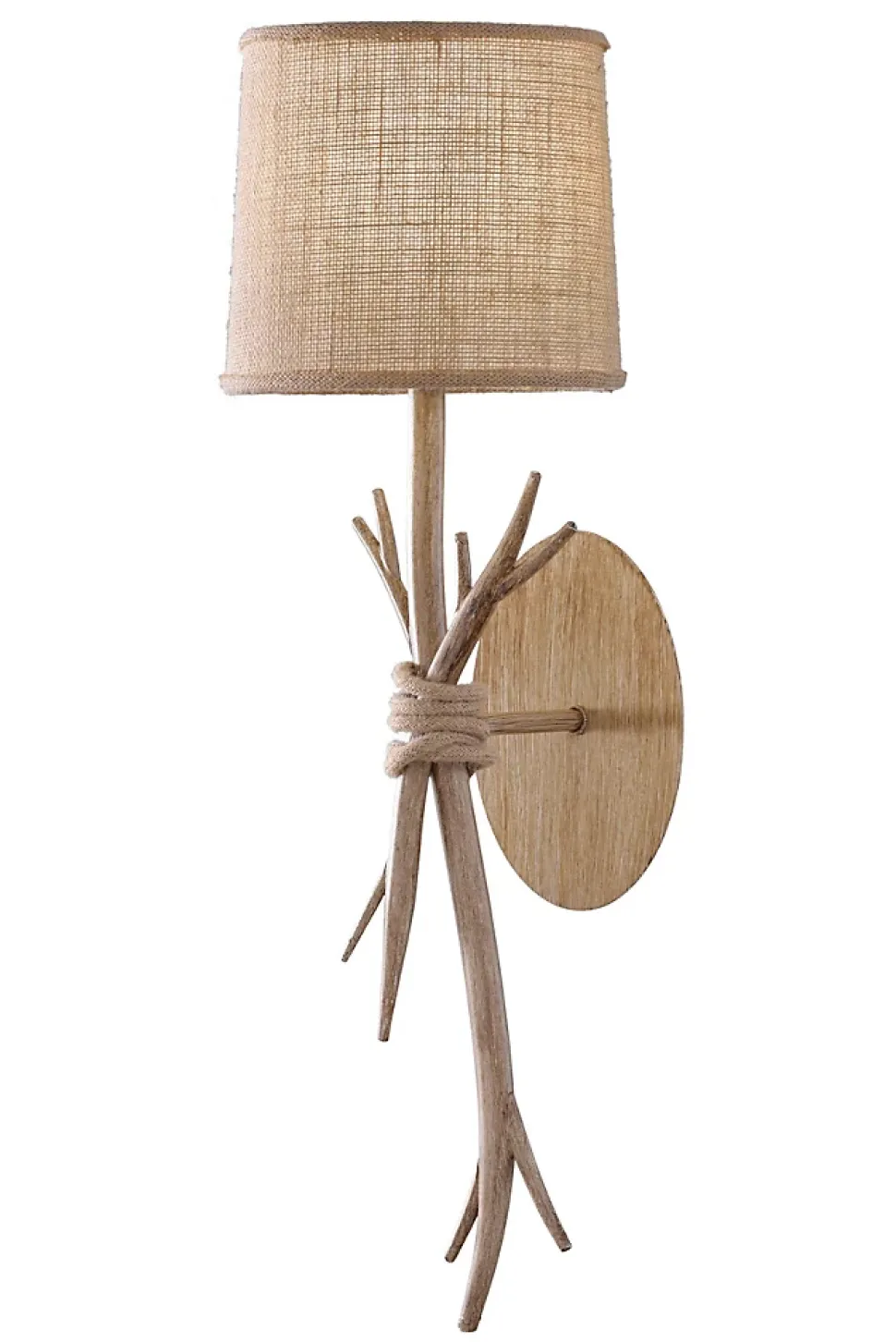 Applique design SabinaMatière structure: Métal imitation boisCouleurs: Bois naturelAbat-jours: Toile de juteGarantie: 2 Ans.Hauteur luminaire: 65,6 cmDiamètre: 20 cmProfondeur: 23,7 cmClasse II1 x E27 max 40W (non inclus)