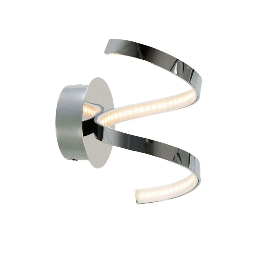 Applique LED spirale de la série Film. Evadez-vous grâce à la forme contemporaine très décorative de cette applique murale qui embellira votre pièce avec goût. La couleur du métal chromé ajoutera en plus une brillance incroyable à votre décoration. Pour parfaire votre intérieur de style design – futuriste, vous pouvez associer cette applique avec d’autres éléments de la collection Film.) Livré monté, prêt à installer (