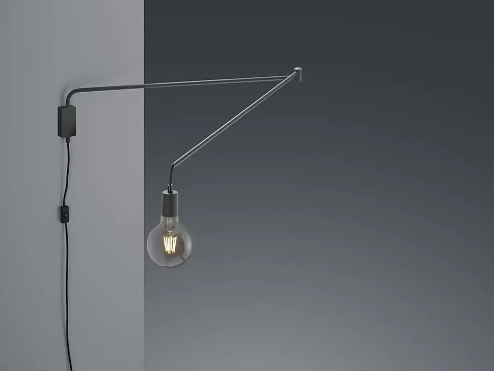 Un design minimaliste avec une portée maximaleL’applique murale LINE de TRIO s’adresse aux amateurs de design épuré et de flexibilité. Son bras articulé de 150 cm offre une portée exceptionnelle, idéale pour remplacer une suspension au-dessus de la table ou un lampadaire dans le salon.Une solution modulable, élégante et pratiqueFabriquée en métal noir mat, cette applique s’intègre avec élégance dans tous les styles d’intérieurs. L’interrupteur à cordon intégré permet un usage intuitif au quotidien. Grâce à sa conception pivotante, orientez la lumière exactement là où vous en avez besoin.Éclairage LED recommandéPréférez une ampoule LED E27 (non incluse) pour un éclairage économique et durable. Les ampoules LED permettent jusqu’à 80 % d’économies d’énergie, dégagent peu de chaleur et ont une durée de vie prolongée. Idéal pour réduire sa consommation tout en respectant l’environnement.