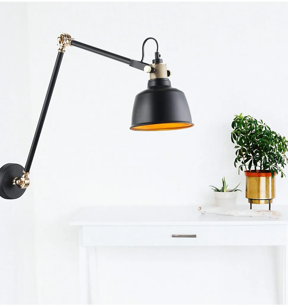 Belle et fonctionnelle, l’applique Addis s’intégrera parfaitement à votre décoration industrielle. Son bras articulé de 65cm prolongé d’un abat-jour en métal noir vous sera particulièrement utile pour lire ou travailler.Équipez Addis de l’ampoule E27 de votre choix et installez la dans votre chambre ou dans votre bureau : elle vous accompagnera dans toutes vos tâches, et avec style.) Livré monté, prêt à installer (