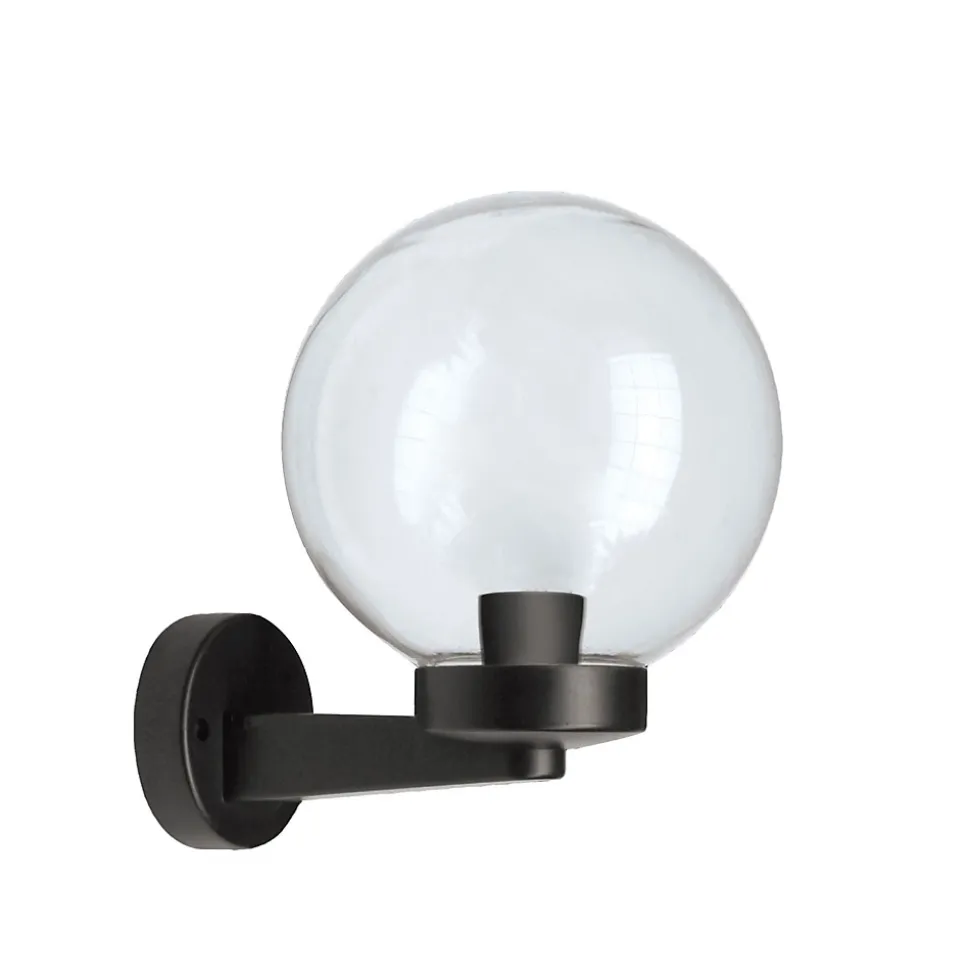 Applique murale extérieure IP44, avec sphère diamètre 200 mm. Compatible avec les ampoules LED jusqu’à 40W; Connexion E27; ampoule non incluse; Diffusion à 360 °. Matériel: PMMA; Le PMMA est un polymère hyper-résistant qui résiste aux chocs et au passage du temps. Se connecte directement au secteur.