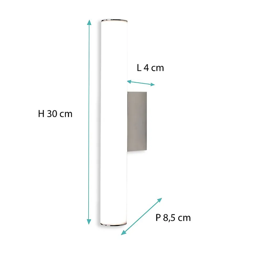 Dimensions du produit (L x l x h) : 32,5 cm x 9,5 cm x 5 cm ; Classe énergétique : A+ ; Poids : 0,46 Kilogrammes ; Watt : 5W ; Batterie(s) / Pile(s) requise(s) : non ; Type de piles : non ; Matière : Aluminium ; Couleur : Chrome ; Couleur de la lumière : Chrome ; Kelvins : 4000K ; Lumens : 360 ; Etanche : oui ; Indice de protection IP : IP44