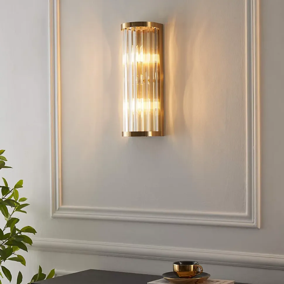 Ajoutez une touche d’élégance et de glamour à votre décor avec notre splendide applique demi-cylindrique Andria. Mesurant 45 cm, cette pièce d’éclairage exceptionnelle est conçue pour attirer tous les regards et illuminer votre intérieur de façon remarquable. À compléter avec deux ampoules E14 (non fournies), elle crée une ambiance chaleureuse et luxueuse. Les pampilles en cristal ajoutent une touche d’éclat supplémentaire une fois l’applique allumée.) Assemblage à faire par vos soins (