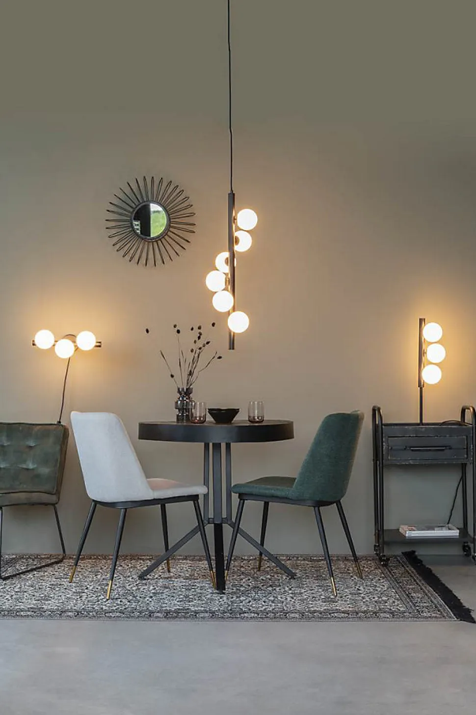 Applique design noir mat 3 boules de verre – Boite à designVoici l’applique design avec bras principal noire mat et boules de verre disposées de manière verticale et circulaire.Cette lampe murale ira parfaitement dans votre bureau, chambre, salon ou votre entrée pour un usage intérieur.Présentée ici en applique, Monica se décline également en suspension, en et lampe à poser.Hauteur:15 cmLongueur:38 cmprofondeur18.5 cmPoids:1,1 kgMatériaux:Métal et verreAmpoule non fournies:G9