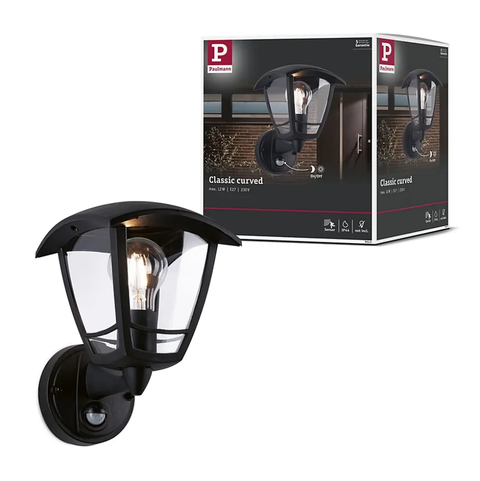 Détecteur de mouvement|Pour raccordement direct au secteur 230V|Protection IP : IP44 – Protection contre les projections d’eau|Ampoule E27 jusqu’à 12 watts|Ne pas oublier : Commandez l’ampoule adaptée en même temps !|Des effets lumineux décoratifs mettent le mur en scène