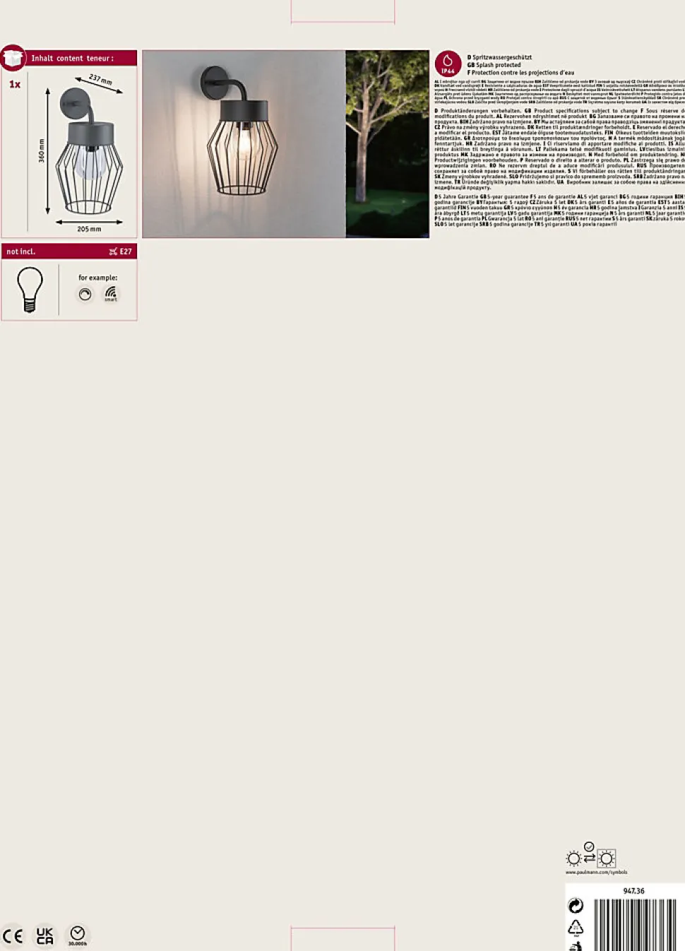 L’applique moderne Lanka, en discrètes tonalités de gris, confère un surcroît de sécurité à l’extérieur et un meilleur balisage dans l’obscurité. Les luminaires d’extérieur situés près de la côte sont exposés à des conditions environnementales plus sévères que ceux situés à l’intérieur des terres. La teneur en sel de l’air attaque plus fortement les métaux et les matières plastiques Grâce à la résistance à l’eau de mer, le luminaire résiste aux agressions environnementales en bord de mer et est donc idéal sur le littoral. Selon l’ampoule utilisée, la lampe est dimmable.