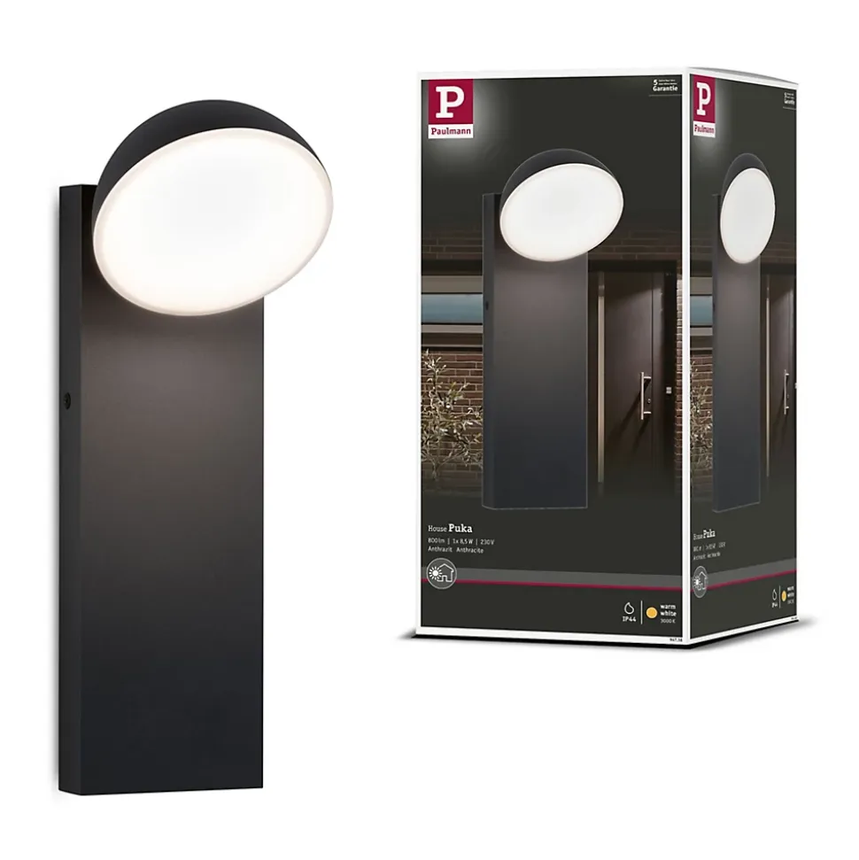 Les luminaires d’extérieur situés près de la côte sont exposés à des conditions environnementales plus sévères que ceux situés à l’intérieur des terres. La teneur en sel de l’air attaque plus fortement les métaux et les matières plastiques L’applique d’extérieur Puka est particulièrement adaptée pour les murs extérieurs des habitations proches du littoral. La surface anthracite du luminaire est particulièrement résistante à la corrosion, le luminaire est donc moins sujet à la corrosion exercée par l’air salin. La lumière blanc chaud diffuse garantit une diffusion homogène de la lumière et un éclairage non éblouissant. L’indice IP 44 signifie que ce luminaire est protégé contre les aspersions.