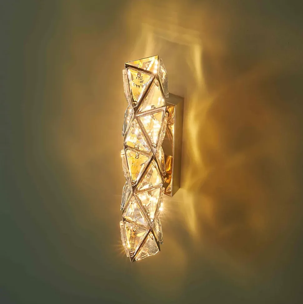 Entre éclat et sophistication, Dalina illumine avec panache. Les pampilles en cristal taillé diffusent une lumière intense et décorative, magnifiée par la structure dorée. Cette applique murale transforme chaque mur en mise en scène élégante.) Livré monté, prêt à installer (