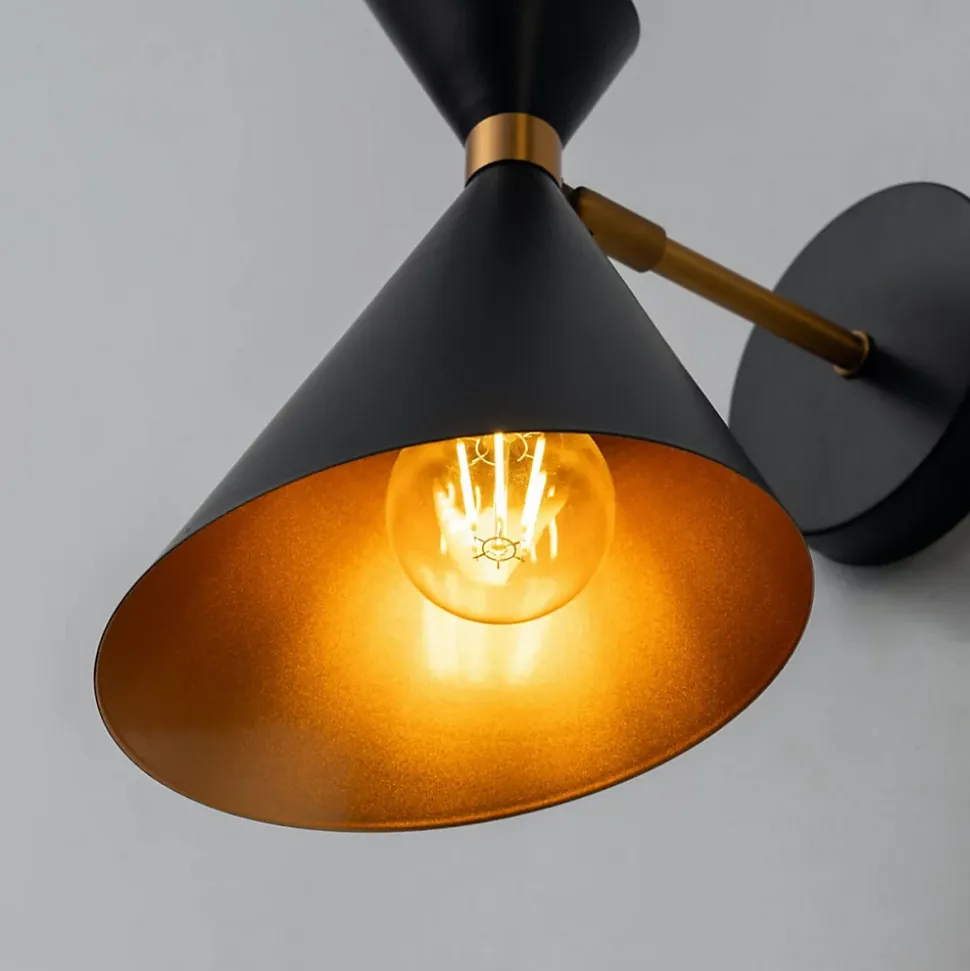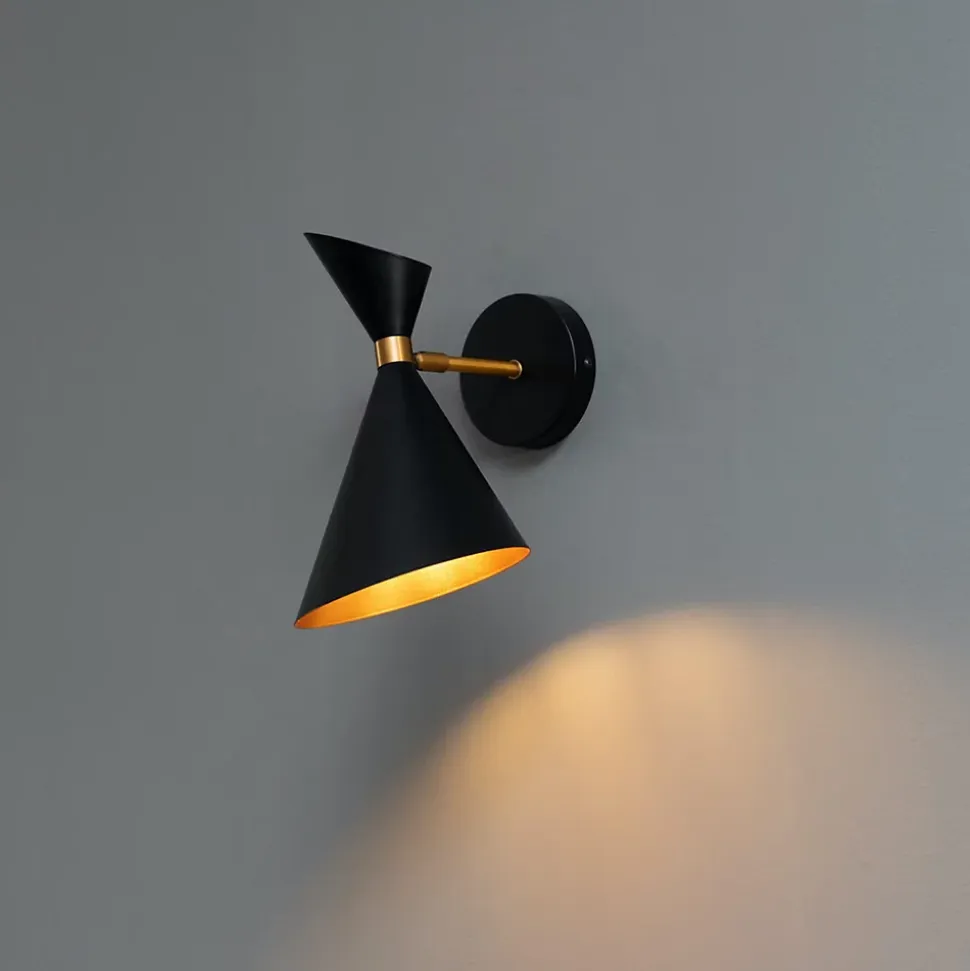 Adoptez le style moderne avec l’applique murale noire Valdivia de 30 cm de diamètre et 30 cm de hauteur. Sa forme de cône originale dissimule astucieusement la source lumineuse, laissant uniquement la lumière agréable se diffuser dans la pièce. Associez-la à une ampoule de culot E27 et privilégiez les LED pour une solution écoénergétique. L’extérieur noir et l’intérieur doré créent un contraste saisissant avec un magnifique jeu d’ombre et de lumière. Découvrez également la suspension de la même collection.) Livré monté, prêt à installer (