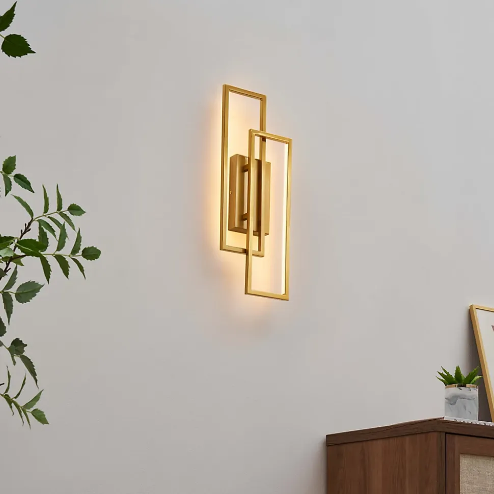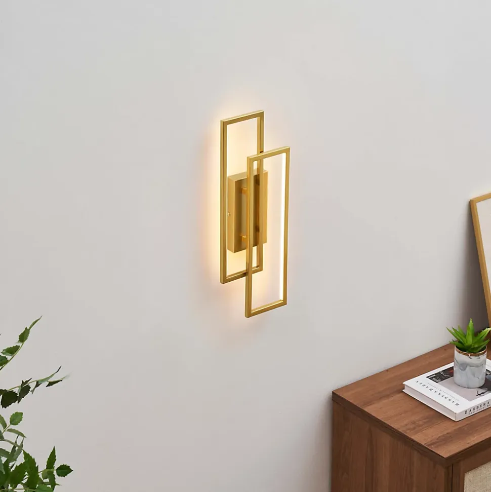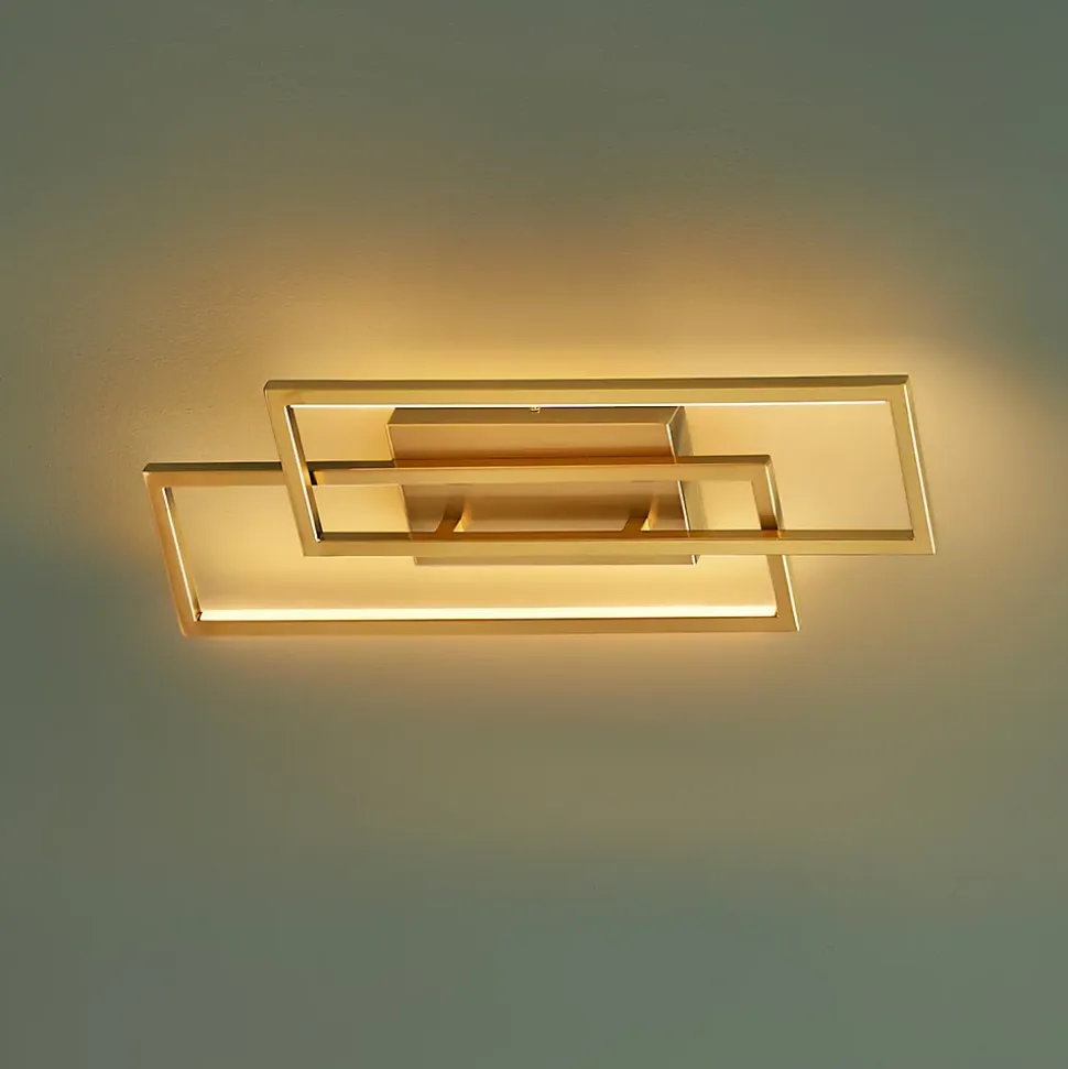 L’applique Torello, avec ses deux rectangles et sa finition dorée, s’adapte aussi bien en tant qu’applique murale qu’en plafonnier. Elle émet une lumière blanche chaude à 3000K, parfaite pour instaurer une atmosphère accueillante. Son éclairage LED indirect renforce l’élégance de ce modèle, qui existe également en noir.) Livré monté, prêt à installer (