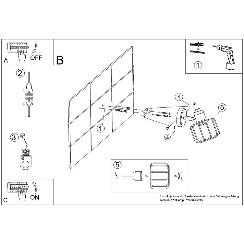 - Source lumineuse : E14, 1x LED max 10 W, ~230V, 50Hz, IP20, classe de protection I.