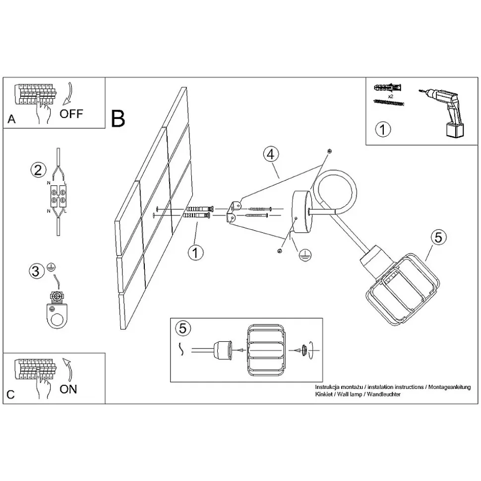 - Source lumineuse : E14, 1x LED max 10 W, ~230V, 50Hz, IP20, classe de protection I.