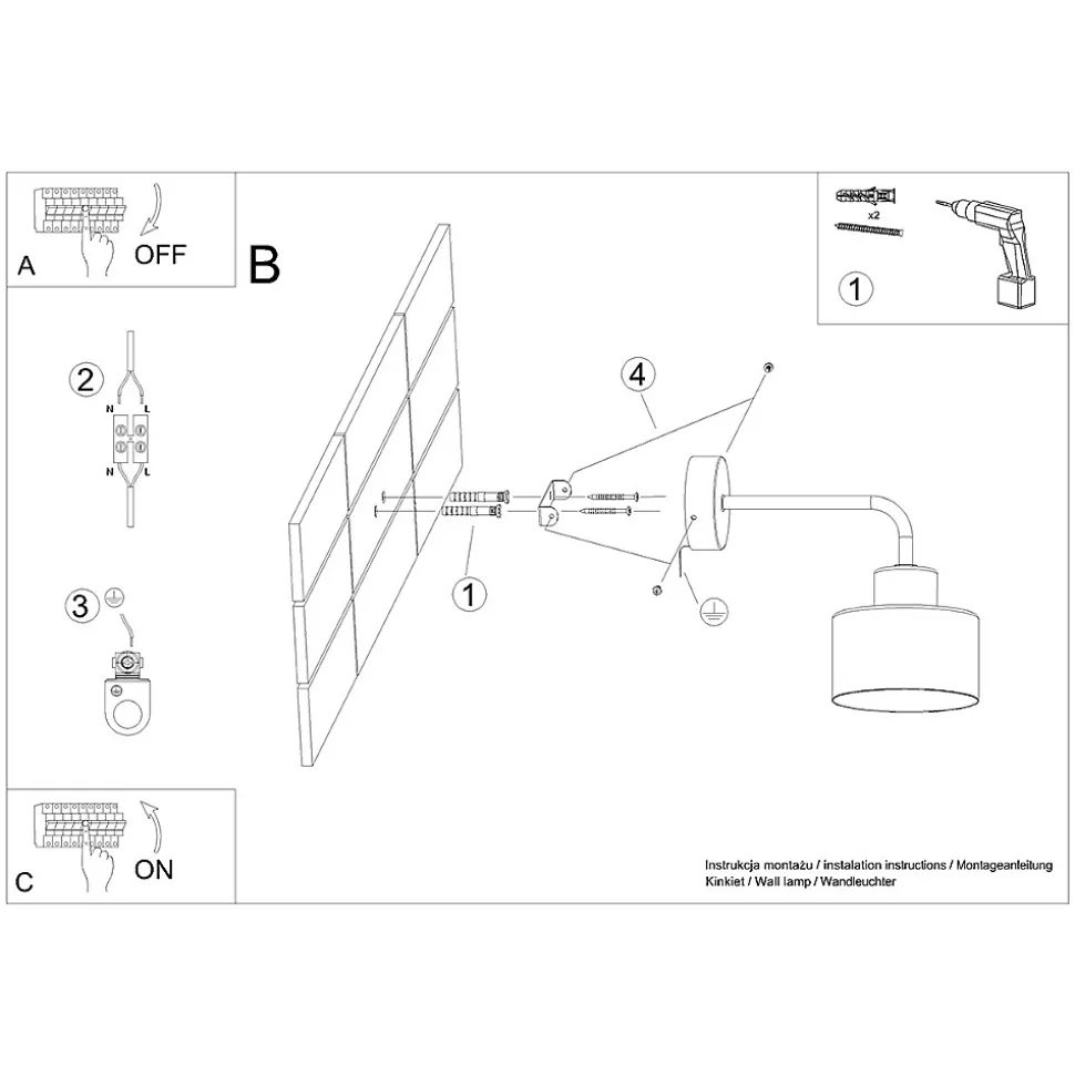 - Source lumineuse : E27, 1x LED max 15W, ~230V, 50Hz, IP20, classe de protection I