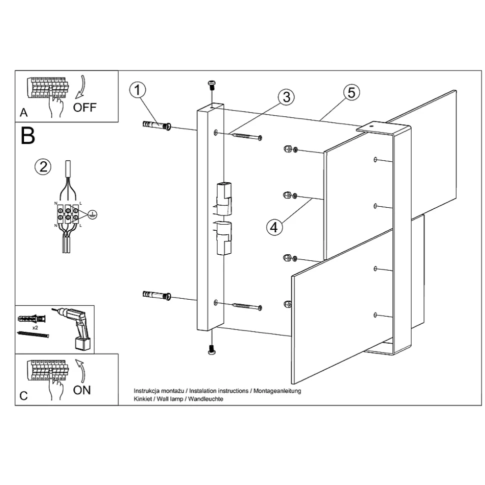 - Source lumineuse : G9, 2x LED max 8W, ~230V, 50Hz, IP20, classe de protection I