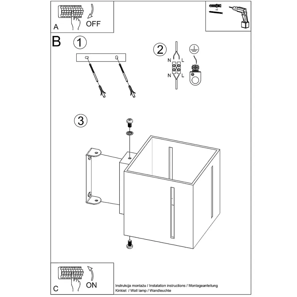- Source lumineuse : G9, 1x LED max 8W, ~230V, 50Hz, IP20, classe de protection I