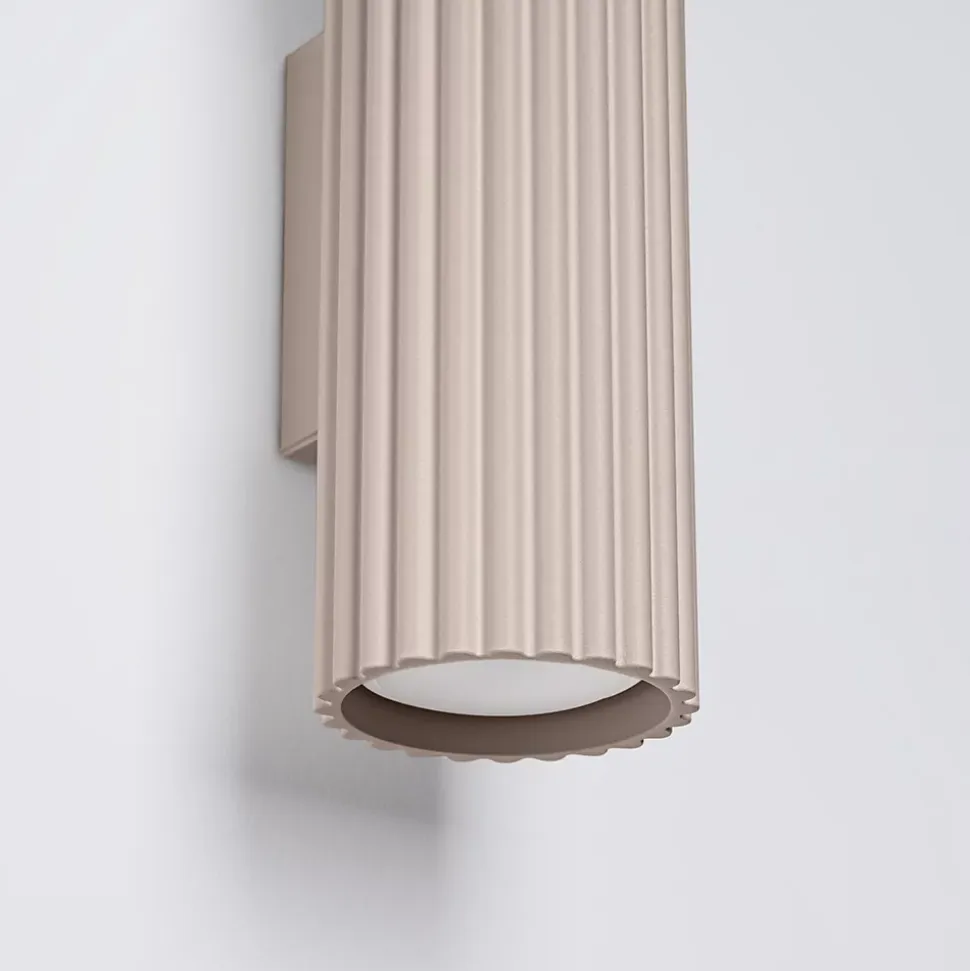 - Style minimaliste, forme tubulaire, couleur taupe