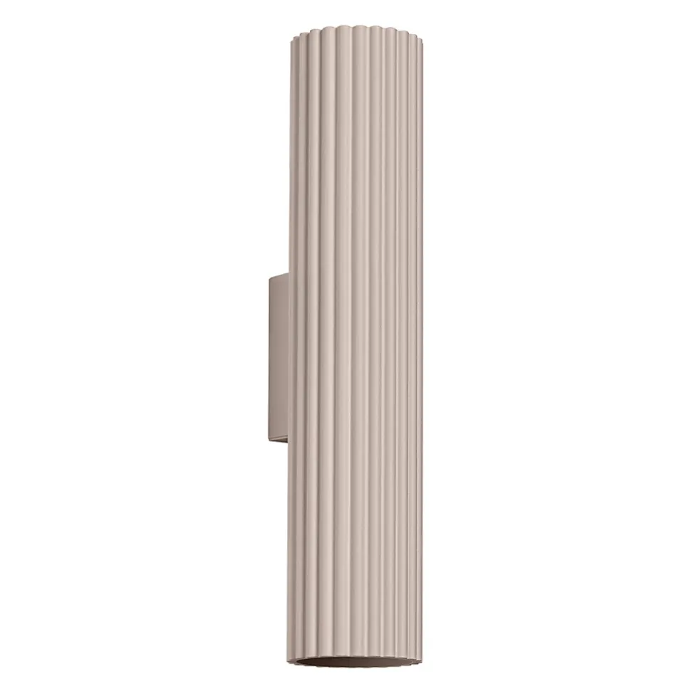 - Style minimaliste, forme tubulaire, couleur taupe