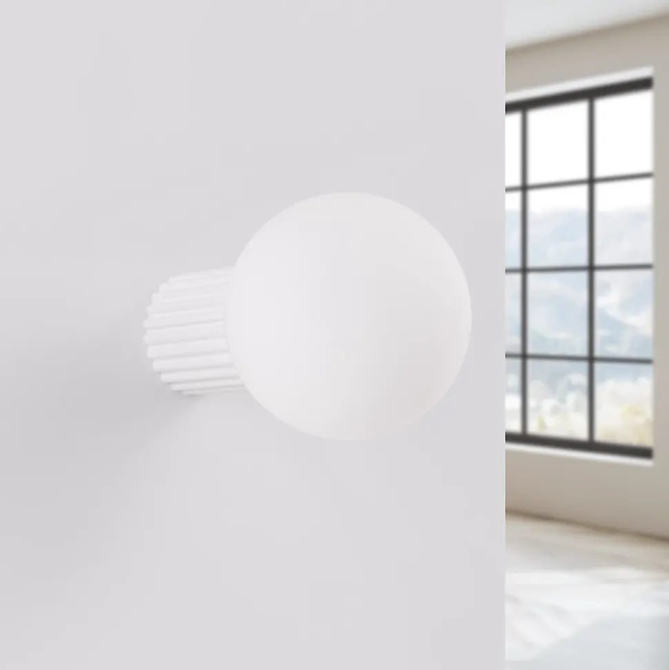 - Lampe HALO : design moderne avec corps cannelé et boule laiteuse.