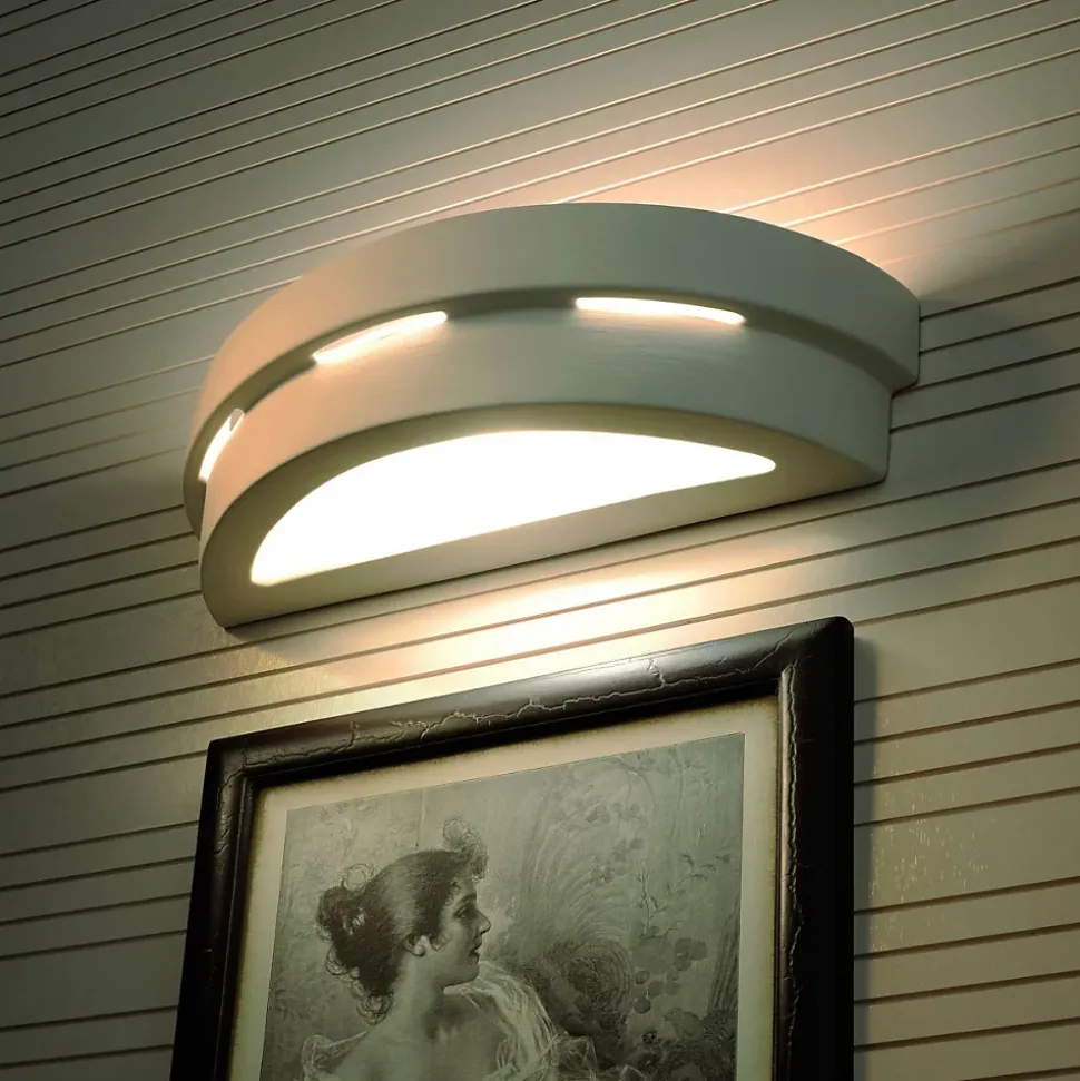 - Série Appliques murales élégantes en céramique avec verre dépoli par le bas et ouvert sur le dessus.