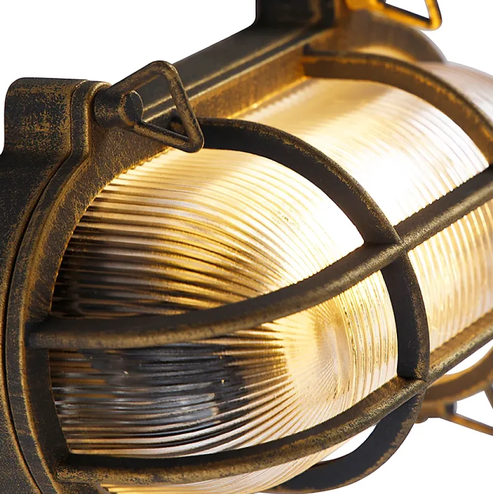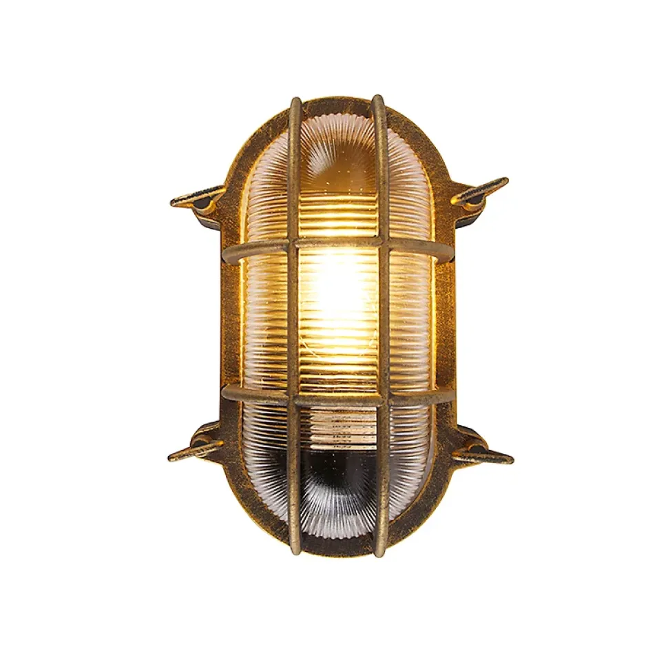 Cette applique et plafonnier à intensité variable de style nautique porte un nom qui en dit long : Noutica. Apportez une ambiance chaleureuse et nostalgique à votre intérieur avec cette lampe de bateau. Son corps en métal lourd or/laiton est doté d’une finition robuste, ce qui lui confère un aspect solide et résistant. Le verre est orné d’un relief qui le sublime et lui donne un effet lumineux particulier. Son format : 10,6 cm de haut, 25 cm de long et 16 cm de large. Sa plaque de montage mesure 2,5 cm de haut, 25 cm de long et 16 cm de large. La lampe possède une douille E27 de grande taille et est livrée sans ampoule, n’oubliez donc pas de commander une ampoule (60W maximum). La luminosité peut être atténuée à l’aide d’un variateur externe, qui n’est toutefois pas inclus. Grâce à son indice de protection IP44, la lampe Noutica peut être installée dans des pièces humides comme la salle de bain, mais aussi à l’extérieur sous la pluie. Optez pour une ambiance industrielle et nostalgique avec cette applique et plafonnier Noutica.