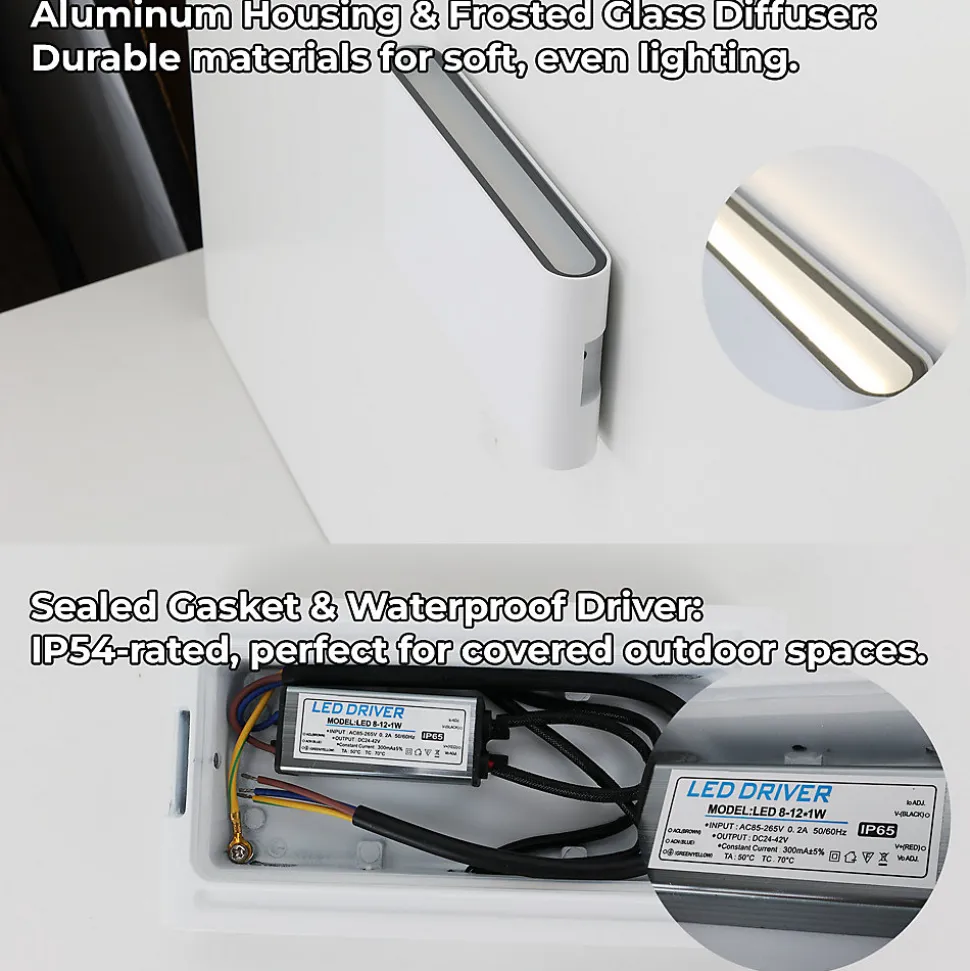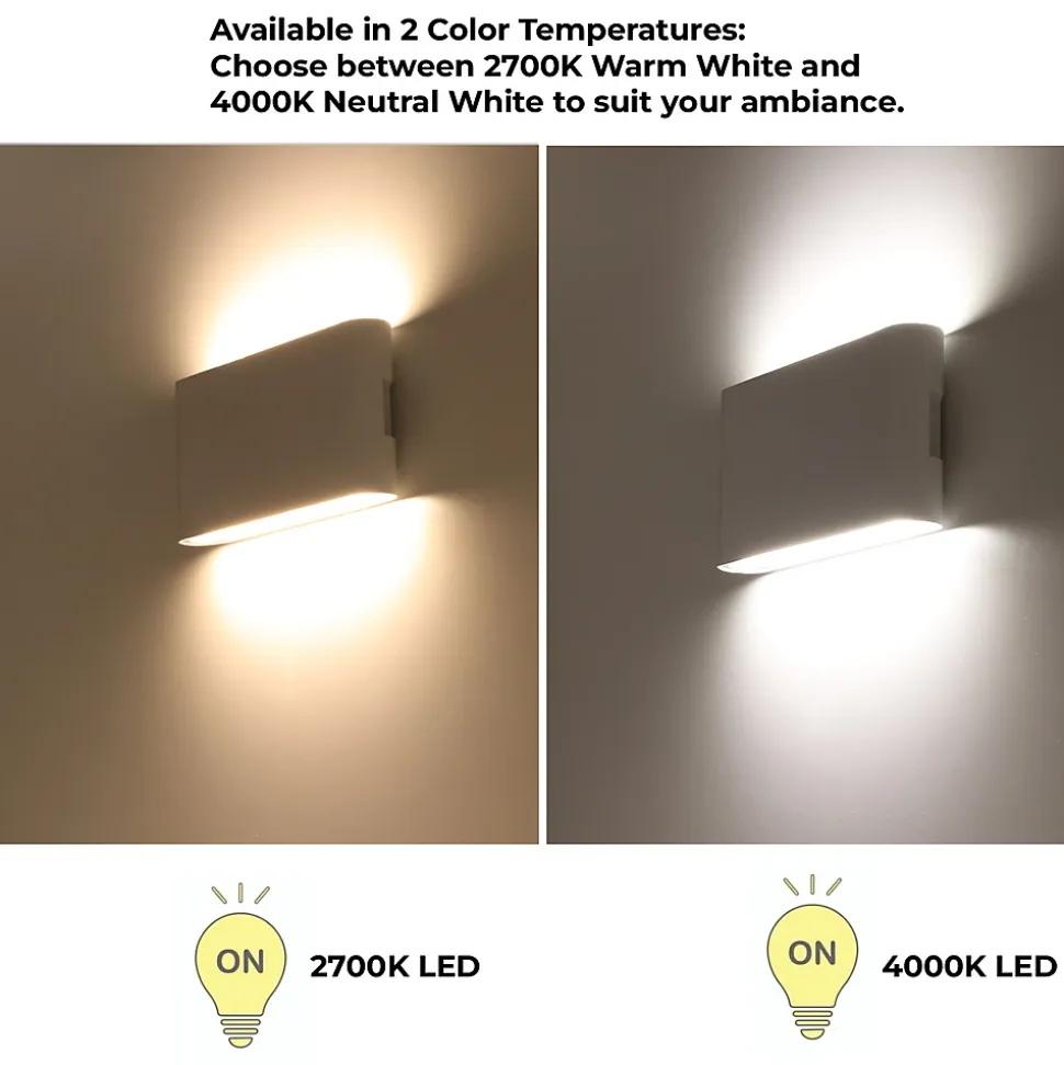 Applique Murale LED 12W SAFATA Blanc Éclairage Haut et Bas IP54 90x175x28mm Lumière 4000K Lapplique LED SAFATA allie design moderne et fonctionnalité idéale pour les intérieurs et extérieurs protégés. Son éclairage double crée une ambiance élégante et décorative sadaptant à de multiples styles et besoins. Caractéristiques Principales Couleurs Disponibles Blanc ou noir pour sadapter à toutes les décorations. Dimensions Compactes 90 mm x 175 mm x 28 mm idéal pour les espaces réduits. Éclairage Double Face Projection de lumière vers le haut et le bas pour un effet sophistiqué. Couleur de Lumière Disponible en blanc chaud 2700K ou neutre 4000K. Protection IP54 Résistant à la poussière et aux éclaboussures parfait pour les extérieurs couverts. Matériau Premium Aluminium de haute qualité robuste et élégant. Efficacité Énergétique Consommation de seulement 12W pour un rendement optimal. Applications Idéal pour balcons couverts terrasses entrées couloirs salons et zones de passage intérieurs ou extérieurs protégés. Alliez style fonctionnalité et durabilité à vos espaces avec lapplique SAFATA.