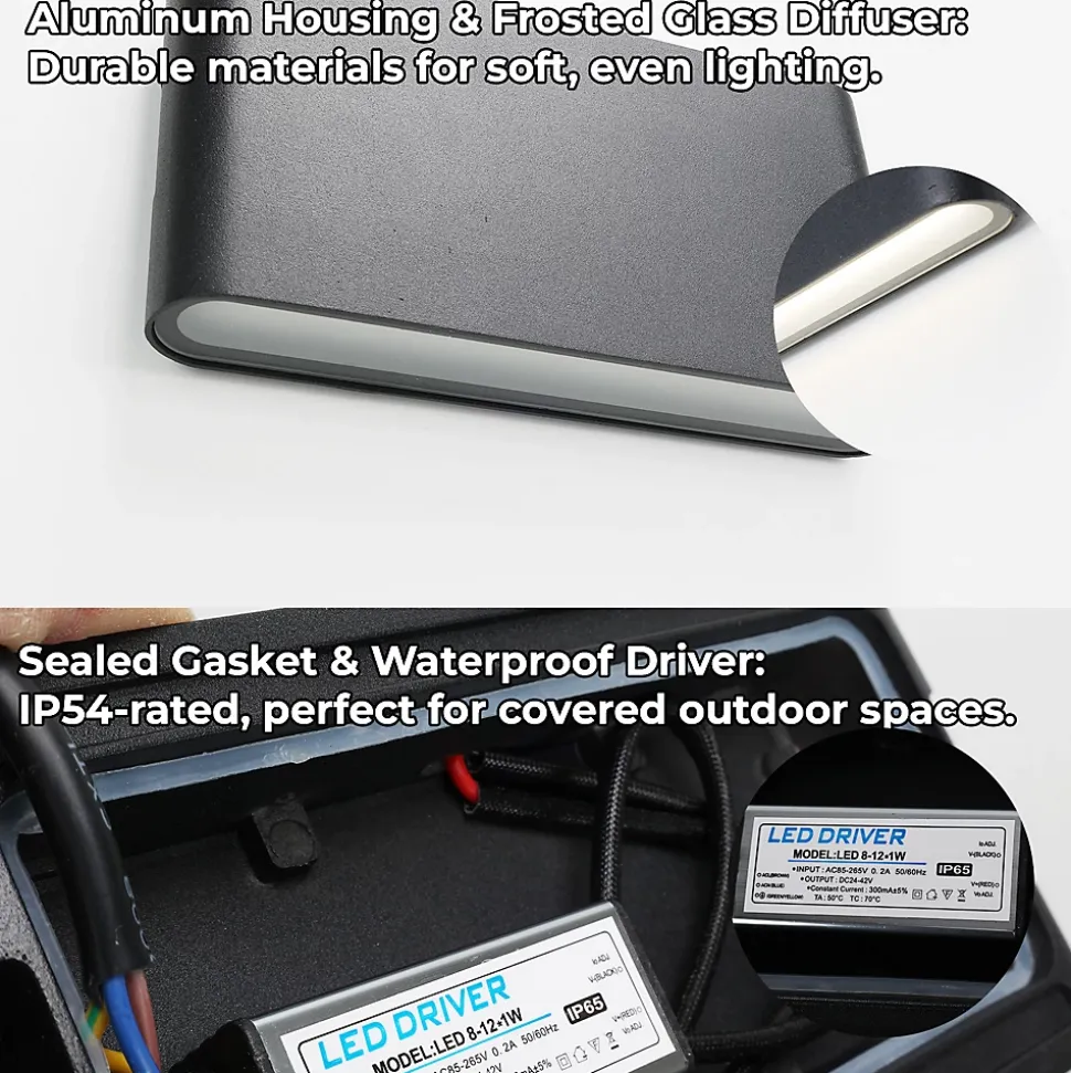 Applique Murale LED 12W SAFATA Noir Éclairage Haut et Bas IP54 90x175x28mm Lumière 4000K Lapplique LED SAFATA allie design moderne et fonctionnalité idéale pour les intérieurs et extérieurs protégés. Son éclairage double crée une ambiance élégante et décorative sadaptant à de multiples styles et besoins. Caractéristiques Principales Couleurs Disponibles Blanc ou noir pour sadapter à toutes les décorations. Dimensions Compactes 90 mm x 175 mm x 28 mm idéal pour les espaces réduits. Éclairage Double Face Projection de lumière vers le haut et le bas pour un effet sophistiqué. Couleur de Lumière Disponible en blanc chaud 2700K ou neutre 4000K. Protection IP54 Résistant à la poussière et aux éclaboussures parfait pour les extérieurs couverts. Matériau Premium Aluminium de haute qualité robuste et élégant. Efficacité Énergétique Consommation de seulement 12W pour un rendement optimal. Applications Idéal pour balcons couverts terrasses entrées couloirs salons et zones de passage intérieurs ou extérieurs protégés. Alliez style fonctionnalité et durabilité à vos espaces avec lapplique SAFATA.