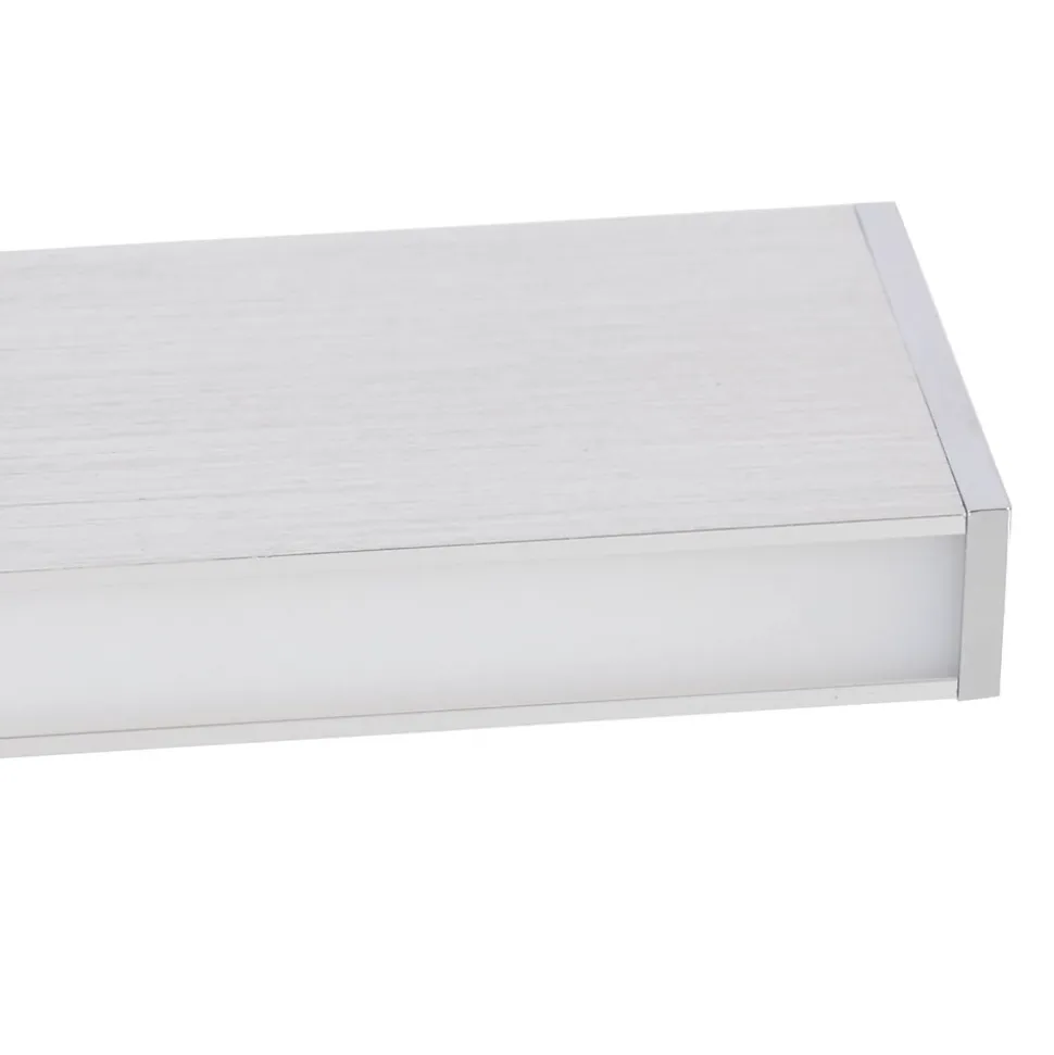 Cette applique murale de la collection DUBAI n’est pas seulement fonctionnelle, elle est aussi un véritable point fort pour tout aménagement d’intérieur. Une applique murale permet de mettre merveilleusement en valeur certaines zones ou objets de la pièce. Vous pouvez mettre en valeur des œuvres d’art, des détails architecturaux ou des meubles particuliers, ce qui crée un intérêt visuel et une profondeur. Mais il est également possible d’éclairer un couloir de manière élégante. Un aspect réduit et une forme anguleuse font de ce luminaire de style moderne un élément indispensable pour tous ceux qui apprécient un aménagement harmonieux. Le luminaire en métal et en plastique chromé attire immédiatement le regard. La combinaison de la structure brossée et de l’abat-jour clair crée une image d’ensemble cohérente. L’applique mesure 45 cm de long, 7 cm de large et 5,5 cm de haut. Avec une applique équipée de 1 LED sur 1 platine LED, vous apportez de la lumière dans l’obscurité. Le design séduit par l’intégration complète de l’éclairage. Ce luminaire correspond à la classe 2. Une tension de réseau de 220-240V ~ 50Hz est nécessaire pour le fonctionnement sur secteur de cet appareil. Ce luminaire de 19 watts a une intensité lumineuse de 1000 lumens et une température de lumière de 3000 kelvins. Donnez à votre maison l’ambiance lumineuse parfaite avec notre applique murale de haute qualité et profitez du confort et du style dans chaque pièce.