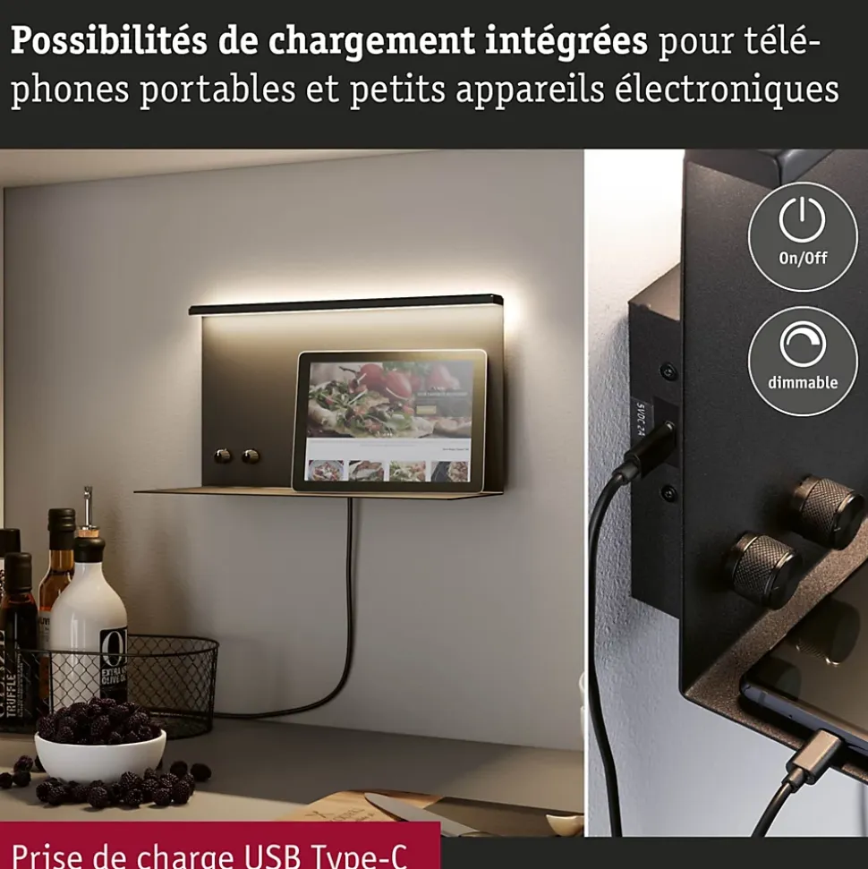 Applique murale 230 V|Convient en tant que liseuse|Prise USB Type-C incluse pour un chargement rapide (Puissance de charge de 10 watts)|Technique LED efficace