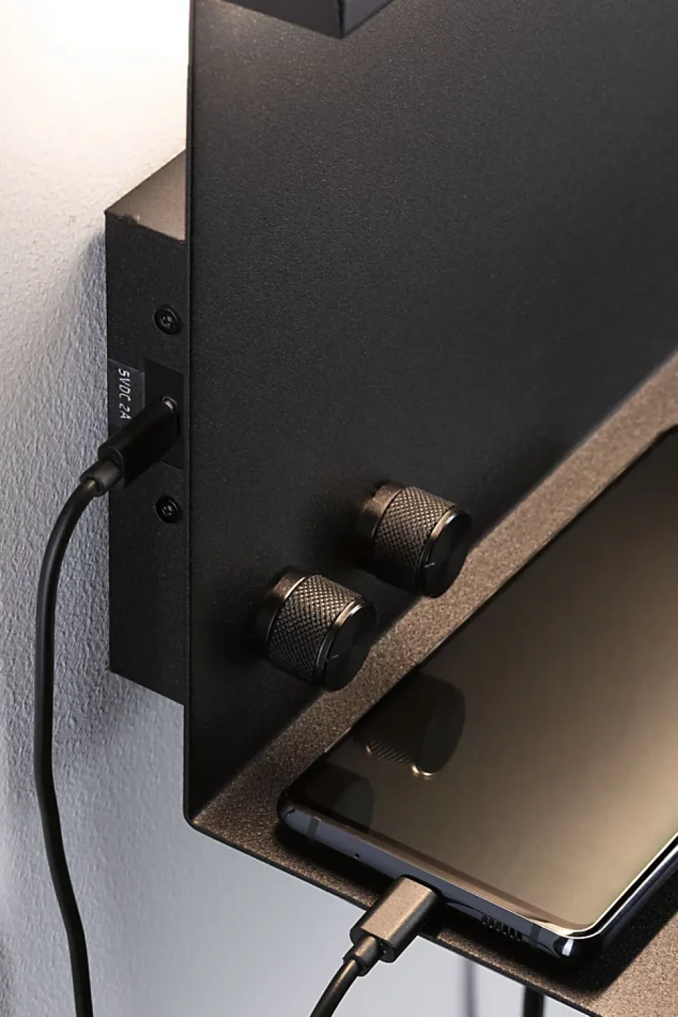 La liseuse murale Jarina en noir mat avec étagère et fonction de chargement intégrées est multifonctionnelle et allie technologie de pointe et élégance. Elle convient à merveille comme éclairage supplémentaire et éclairage de lecture dans les séjours et les chambres ainsi que dans les couloirs et les cuisines, sans oublier les salles de bain. L’éclairage direct et l’éclairage indirect peuvent être activés séparément. Le luminaire dispose de plus d’une petite tablette et d’une prise de recharge USB-C conforme aux standards européens les plus récents pour une recharge rapide. Avec son éclairage blanc chaud, ce luminaire assure une ambiance lumineuse chaleureuse Grâce au câble textile de 1,20 m de long doté d’une fiche, le montage est simplissime. Il suffit d’avoir une prise à proximité. Un raccordement direct à la sortie de courant est également possible grâce au câble textile amovible.
