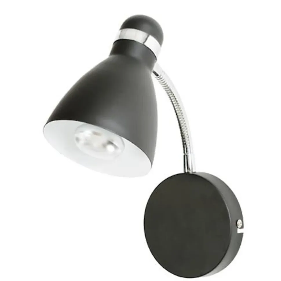 Les caractéristiques techniquesL’applique murale intérieure Viktor fonctionne avec 1 ampoule E14, non fournie, ce qui vous permet de choisir la température de couleur en fonction de vos goûts et besoins.Elle est en métal noir et est équipée d’un câble de 2 m avec interrupteur.Son bras est flexible afin que vous puissiez éclairer à votre choix différentes zones.Les avantages esthétiquesVous apprécierez l’esthétique discrète de cette applique murale ainsi que son aspect pratique.Son corps flexible en métal chromé vous permet de l’orienter comme vous voulez.Vous pourrez installer la liseuse Viktor dans le coin lecture de votre pièce à vivre ou de votre bureau ou l’utiliser comme éclairage de mise en valeur pour un tableau.Elle vous comblera également en tant que lampe de chevet murale. Etant totalement orientable, elle vous permettra de lire en toute quiétude sans déranger votre conjoint(e).