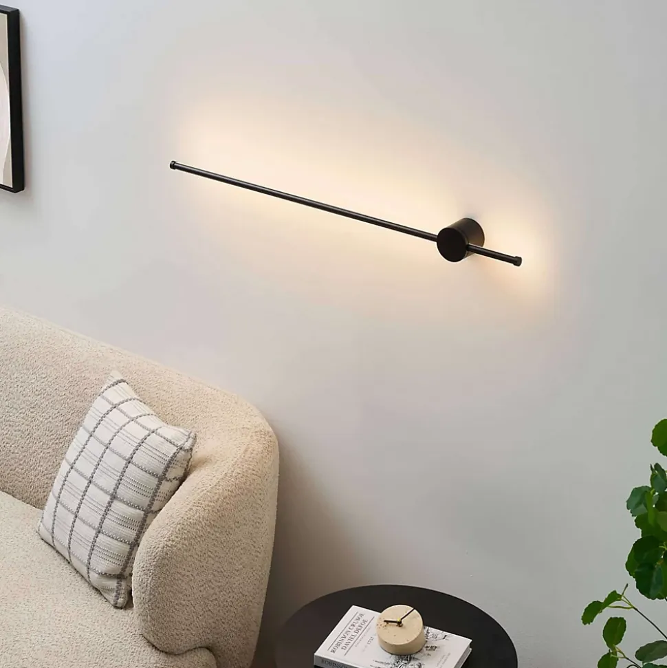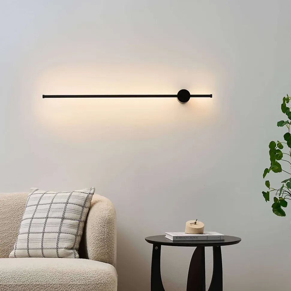Nikolai est une applique sobre et design au format allongé, parfaite pour structurer un mur. Sa barre de 97 cm en métal noir est fixée à un socle stable et discret. Dotée de LED intégrées, elle diffuse une lumière douce vers le mur, créant un halo élégant. Étanche (IP54), elle convient aux espaces abrités comme les terrasses couvertes ou les couloirs.) Livré monté, prêt à installer (