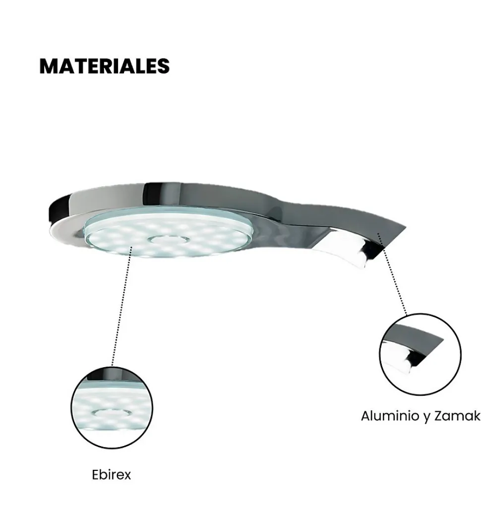 Applique LED pour salle de bains au design moderne et élégant, parfaite pour les activités quotidiennes. Fabriquée en aluminium chromé, résistante aux éclaboussures et à la vapeur, elle a été testée pour garantir une qualité et une durabilité maximales. Dotée d’une lumière LED de 6W, elle fournit un éclairage blanc brillant et contribue à réduire la consommation d’énergie. Applique murale de 9 cm émettant 361 lumens et fournissant une lumière blanche neutre de 5700K. Facile à installer, elle comprend tous les accessoires nécessaires pour être placée dans les vestiaires, les cadres en bois ou les murs. Garantie de 5 ans et indice de protection IP44, avec un emballage sécurisé qui a passé des tests d’endurance.