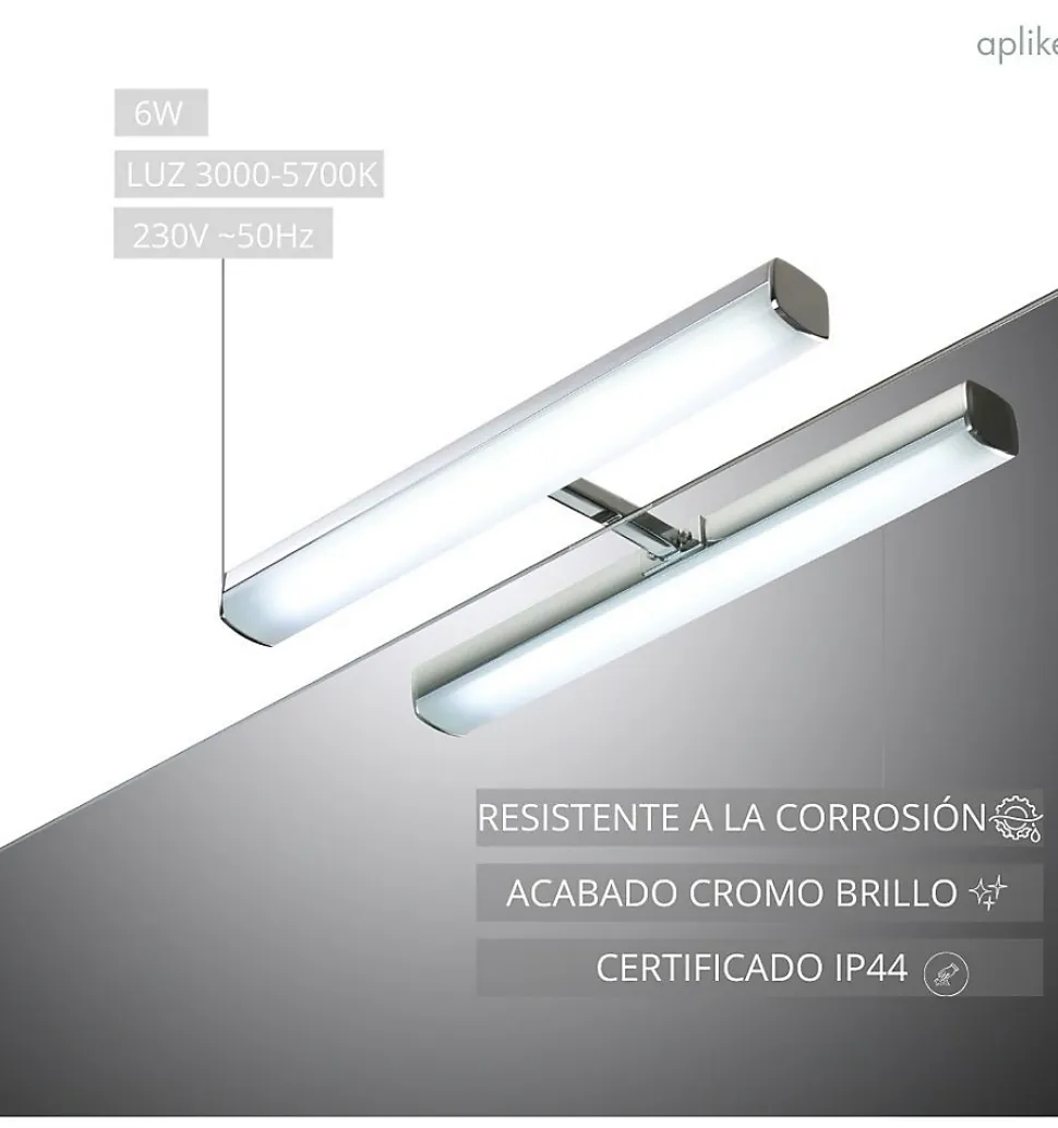 Applique de salle de bains à LED au design moderne et de qualité, parfaite pour les activités quotidiennes avec un éclairage clair. Fabriquée en aluminium avec une finition chromée, elle est résistante aux éclaboussures, à la vapeur et aux environnements humides, ce qui garantit sa durabilité et sa qualité. Équipée d’une lampe LED de 6W, elle fournit un éclairage blanc brillant, contribuant à réduire la consommation d’énergie et à promouvoir une maison plus verte. L’applique murale de 28 cm émet 562 lumens et offre une température de couleur réglable entre 3000K et 5700K. Elle comprend tous les accessoires et un manuel d’instructions pour une installation rapide et facile, s’adaptant à de multiples surfaces telles que les vestiaires, les cadres en bois ou les murs. Il bénéficie d’une garantie de 5 ans, d’un indice de protection IP44 et d’un emballage sûr et résistant.