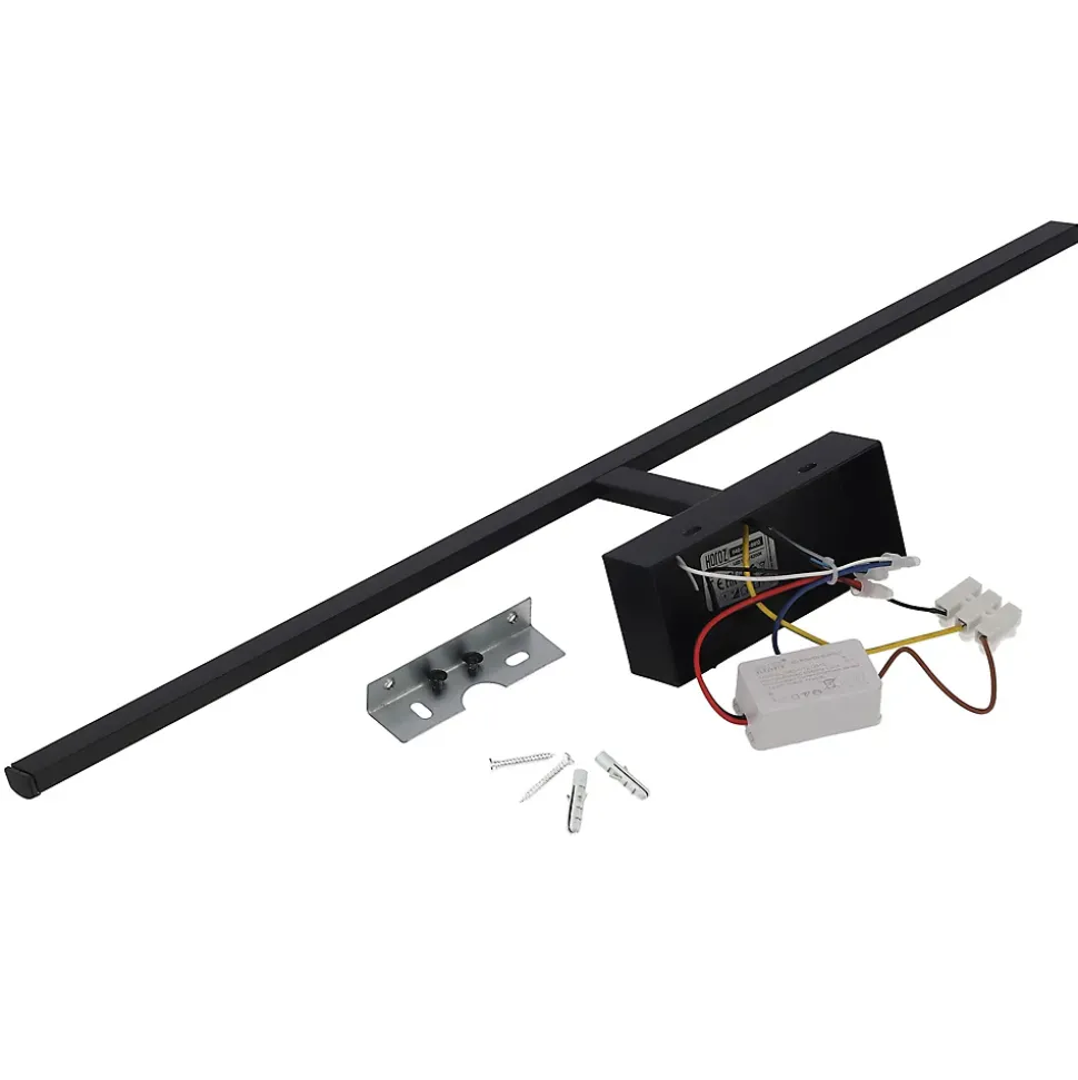Applique murale de salle de bain / au-dessus du miroir ou du tableau, LED, 12W, 850lm, 4200K, IP45, noire, KANARYA-12 | HOROZ | 040-012-0012/BLKApplique murale de salle de bain au-dessus du miroir LED KANARYA-12 | HOROZ est un éclairage fonctionnel et moderne, idéal pour une utilisation dans la salle de bain, au-dessus des miroirs, ainsi que comme éclairage décoratif au-dessus des tableaux. Grâce à son boîtier noir élégant et à sa fabrication de haute qualité, ce produit allie design et durabilité.Grâce à son indice de protection IP45, l’applique est résistante à l’humidité et aux projections d’eau, ce qui la rend parfaite pour les pièces exposées à une humidité accrue. De plus, elle dispose d’un interrupteur intégré, éliminant la nécessité d’un interrupteur mural supplémentaire – son utilisation est simple et intuitive.Données techniques : Code produit : 040-012-0012/BLK Utilisation : Intérieure Type de montage : En saillie Couleur : Noire Source lumineuse incluse : Oui (SMD LED) Tension (V) : 100–250 V Puissance (W) : 12 Équivalent ampoule (W) : 96 Indice de rendu des couleurs (Ra) : >Ra70 Température de couleur (K) : 4200 Matériaux : PC Classe de protection électrique : I Variation d’intensité : Non EEI : – Temps de préchauffage jusqu’à 60% de la puissance lumineuse : Éclairage instantané Flux lumineux (lm) : 850 Efficacité lumineuse (lm/W) : 71 Durée de vie nominale (heures) : 30 000 Indice de protection IP : IP45 Facteur de puissance : >0,5 Angle de diffusion : 120° Temps de démarrage : <0,2 s Nombre de cycles marche/arrêt : 15 000